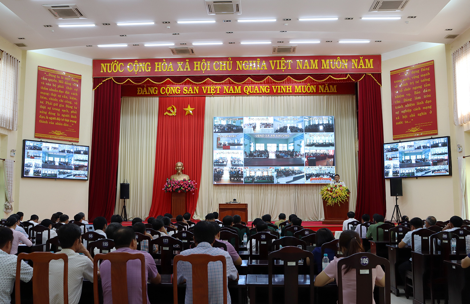 Quang cảnh hội nghị tại điểm cầu hội trường huyện Hớn Quản