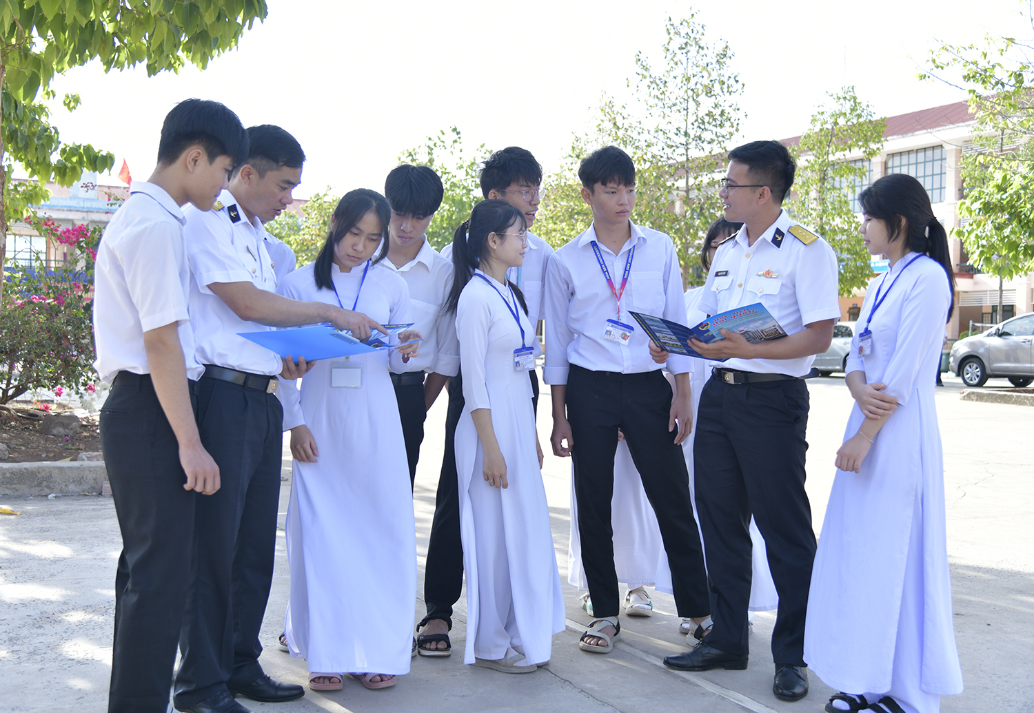 Bên cạnh đó, báo cáo viên của Lữ đoàn 955 còn tư vấn tuyển sinh, giới thiệu về Học viện Hải quân nhằm định hướng nghề nghiệp cho học sinh có nguyện vọng phục vụ trong Quân chủng Hải quân.