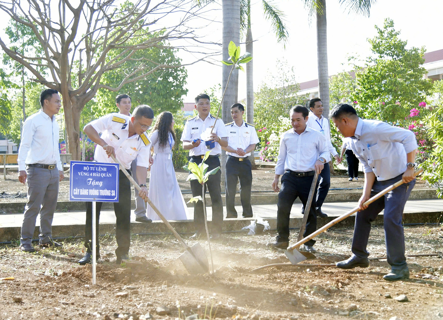 Nhân dịp này, đoàn công tác của Lữ đoàn 955 đã trồng tặng hai trường 4 cây bàng quả vuông-biểu tượng của Trường Sa, như lời gửi gắm sự kỳ vọng các học sinh ngày càng yêu quê hương, đất nước; nâng cao ý chí động lực để rèn luyện, học tập góp phần xây dựng quê hương, đất nước giàu mạnh.