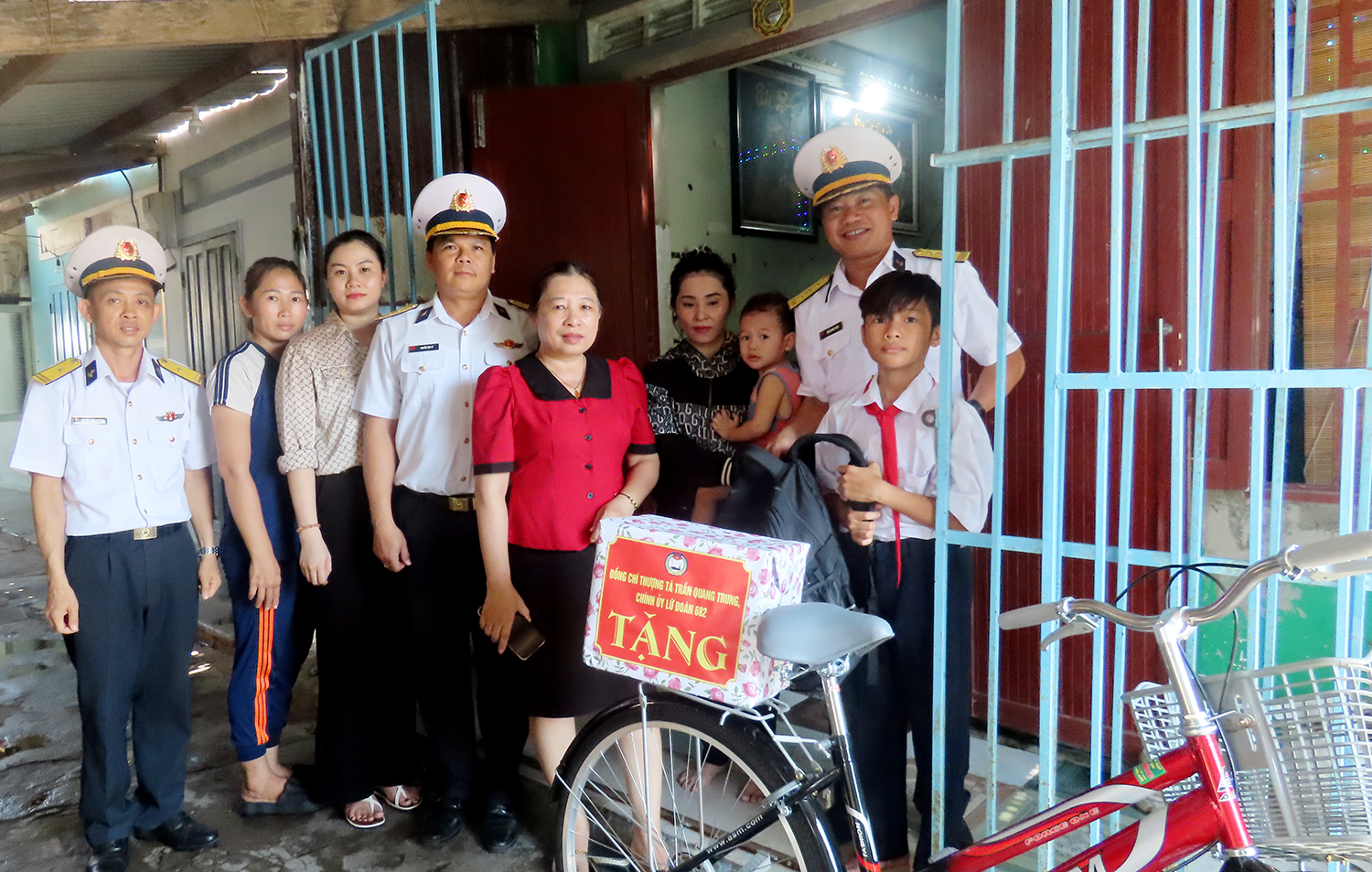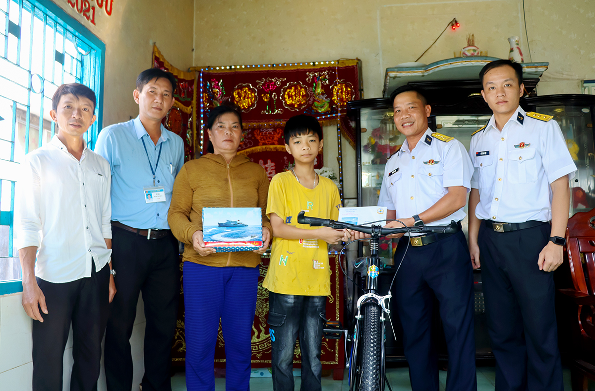Chỉ huy Lữ đoàn 955 tặng cháu Trần Ngọc Duy xe đạp