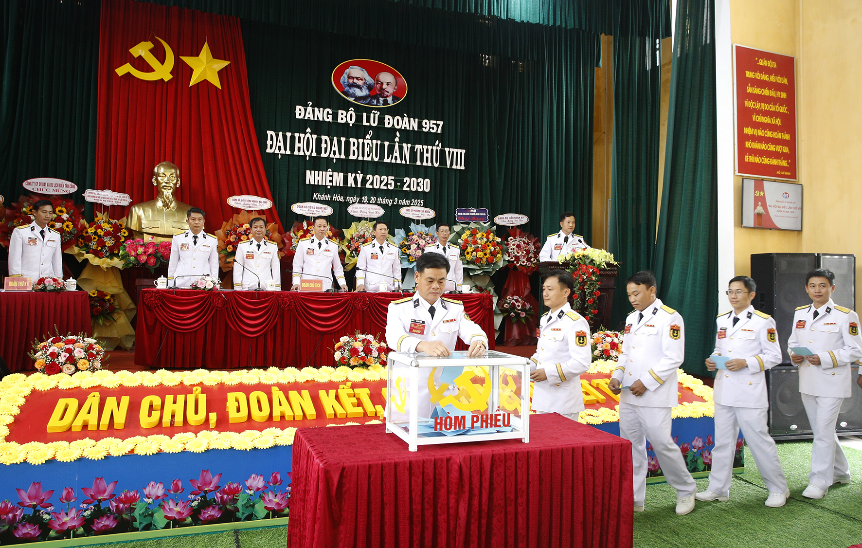 Ngày 19 và 20/3, tại TP.Cam Ranh, tỉnh Khánh Hòa, Đảng bộ Lữ đoàn 957, Vùng 4 Hải quân tổ chức Đại hội đại biểu lần thứ VIII, nhiệm kỳ 2025-2030. Thượng tá Bùi Xuân Bình, Bí thư Đảng ủy, Chính ủy Vùng 4 dự và chỉ đạo.