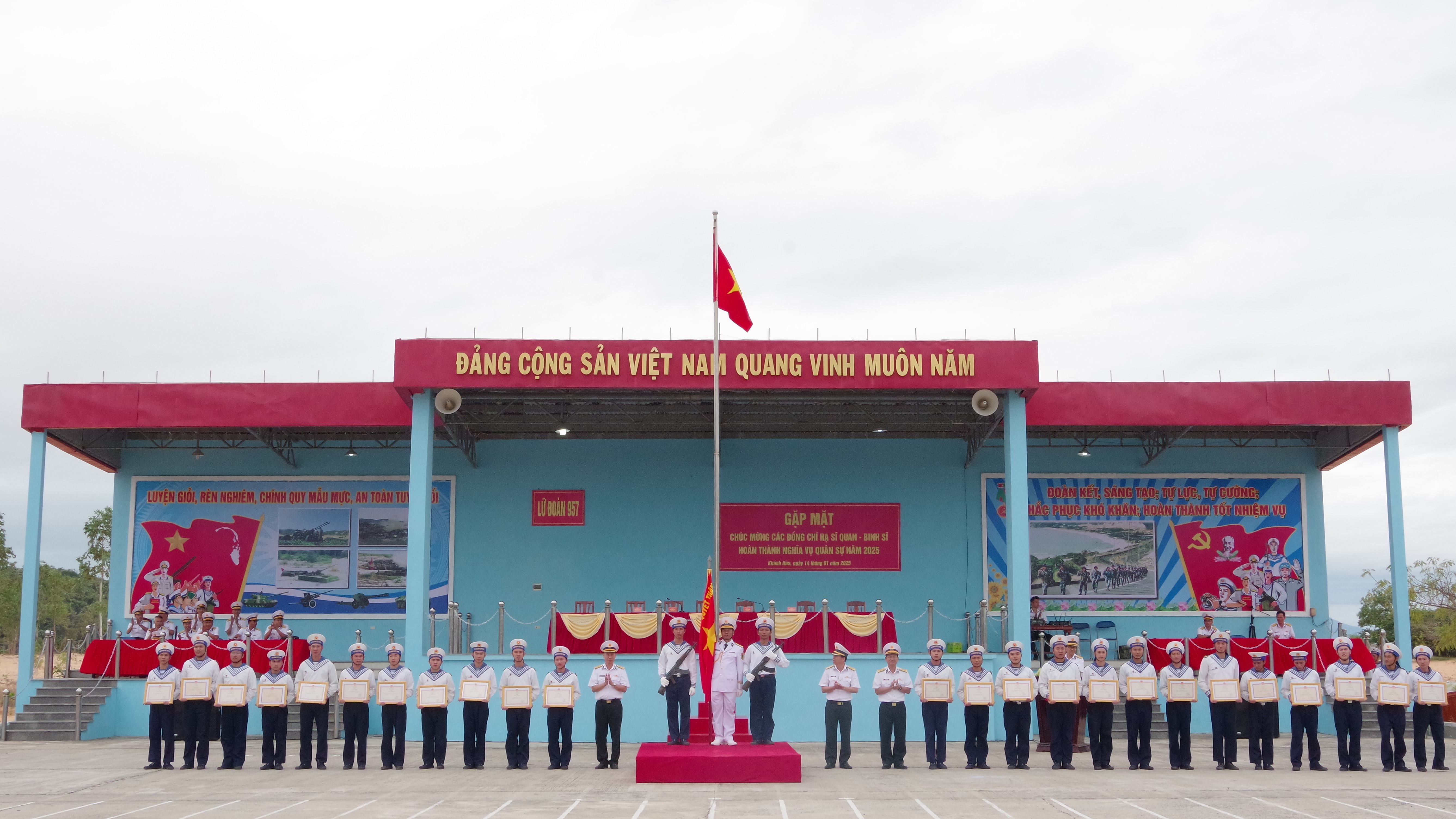 Sáng 14/1, tại TP. Cam Ranh, tỉnh Khánh Hòa, Lữ đoàn 957, Vùng 4 tổ chức gặp mặt chúc mừng các đồng chí HSQ-CS hoàn thành nghĩa vụ quân sự năm 2025. Dự buổi gặp mặt có Thượng tá Tiên Quang Sự, Bí thư Đảng ủy, Chính ủy Lữ đoàn; Đại tá Lê Tiến Thành, Lữ đoàn trưởng.
