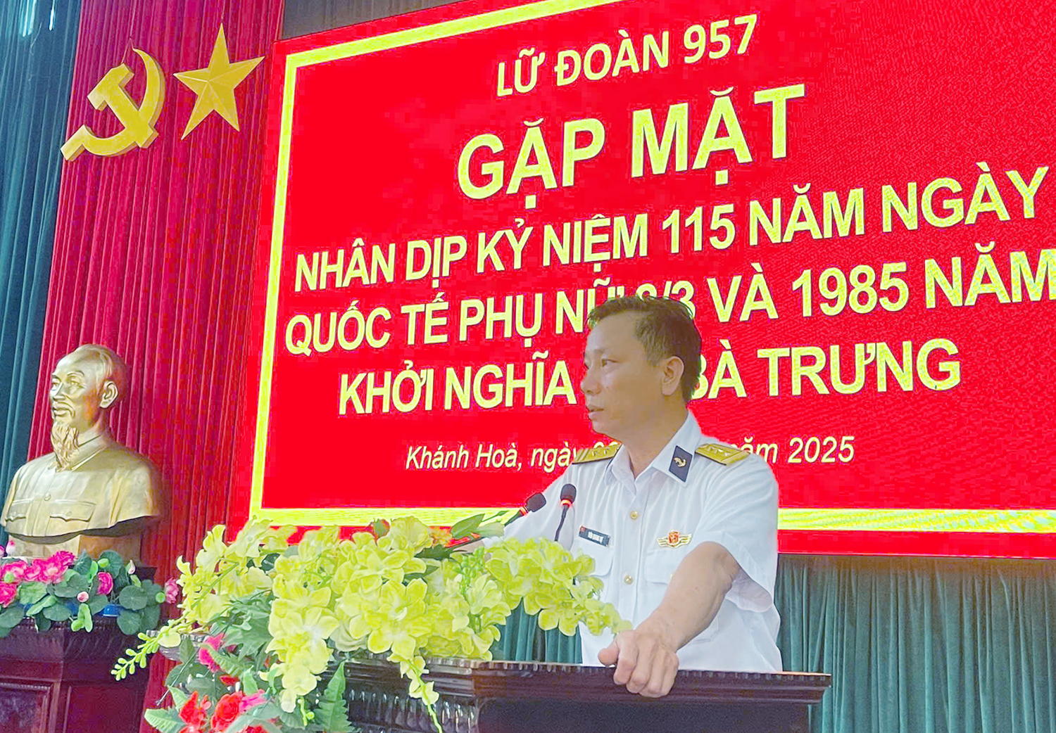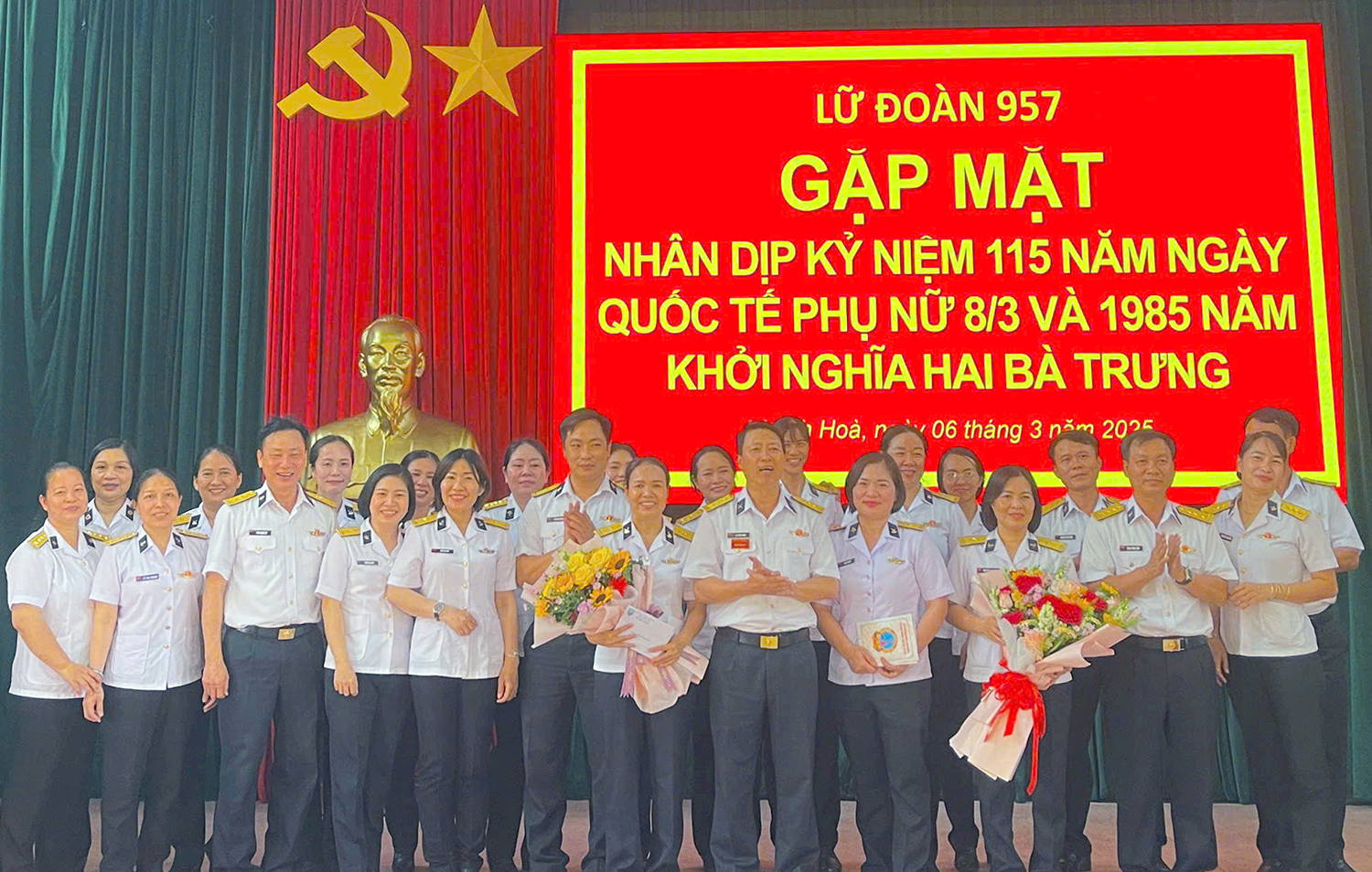 Ngày 6/3, tại TP.Cam Ranh, tỉnh Khánh Hòa, Lữ đoàn 957, Vùng 4 Hải quân tổ chức gặp mặt cán bộ, hội viên phụ nữ nhân dịp kỷ niệm 115 năm Ngày quốc tế phụ nữ 8/3 và 1985 năm Khởi nghĩa Hai Bà Trưng.