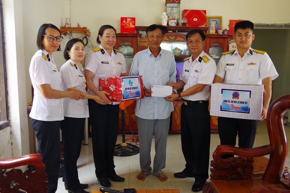 Đoàn công tác Lữ đoàn 957 tặng quà gia đình chính sách