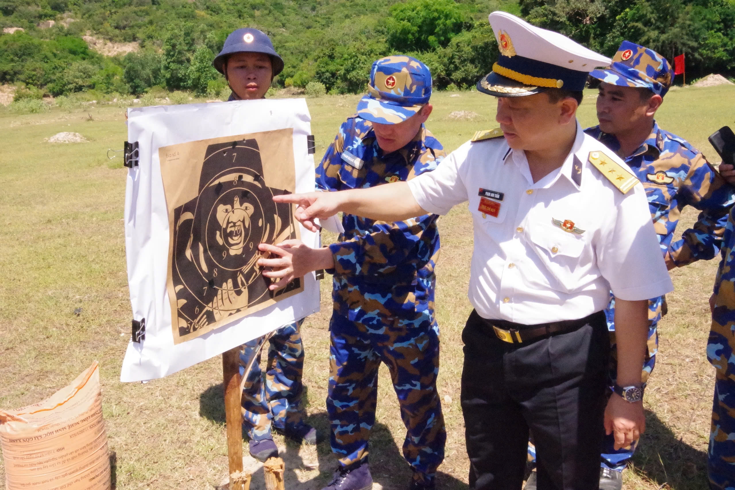 Thượng tá Phạm Anh Tuấn kiểm tra kết quả bắn của CSM