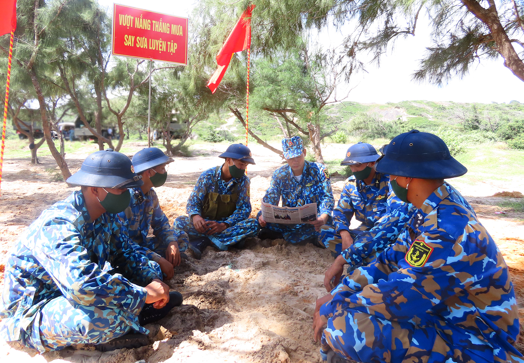 Đọc báo giờ giải lao, đảm bảo đời sống tinh thần bộ đội tại Tiểu đoàn 872, Lữ đoàn 957