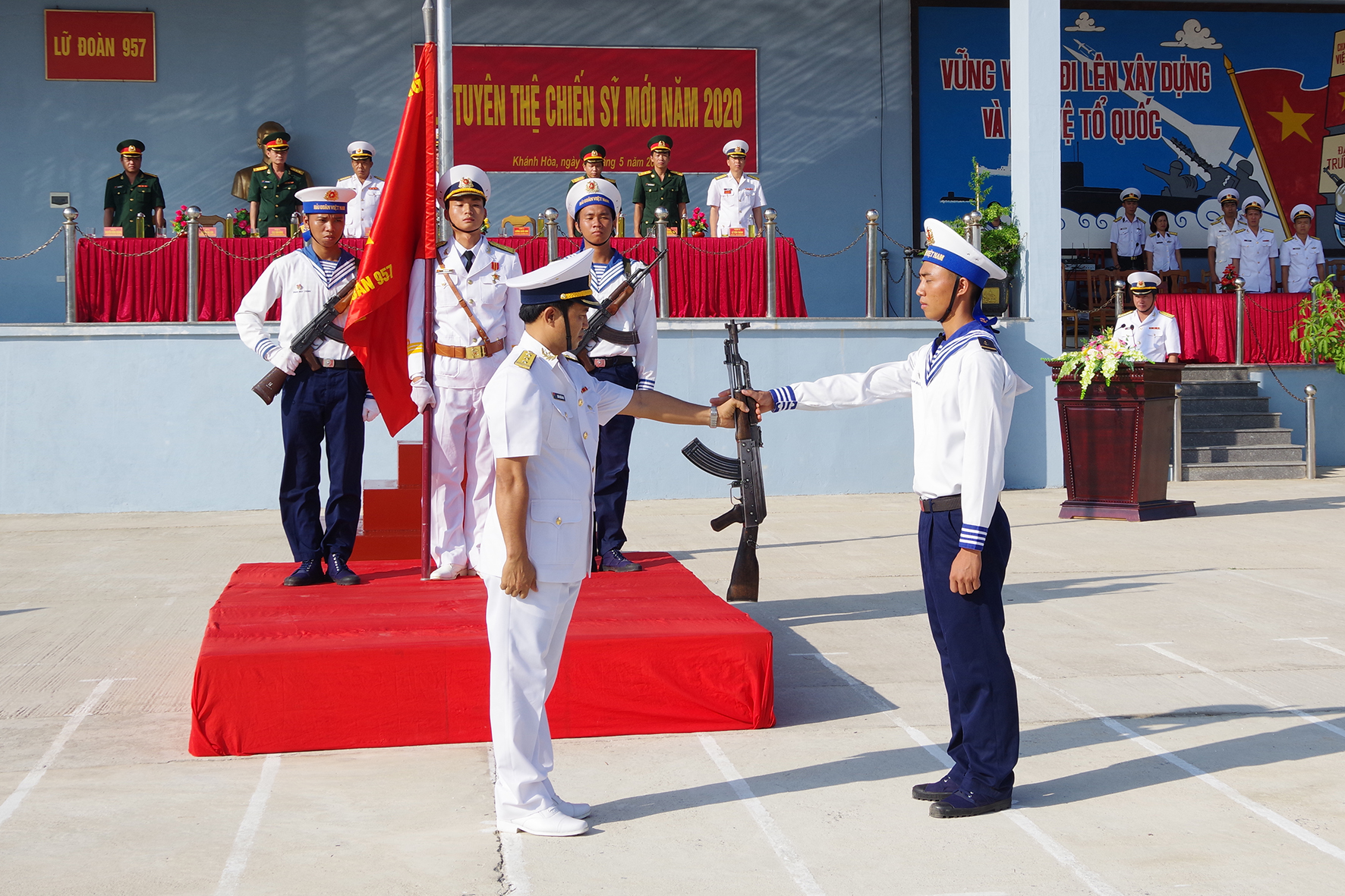 Sáng 29-5, tại TP. Cam Ranh, tỉnh Khánh Hòa, Lữ đoàn 957, Vùng 4 Hải quân đã tổ chức lễ tuyên thệ chiến sĩ mới năm 2020.
