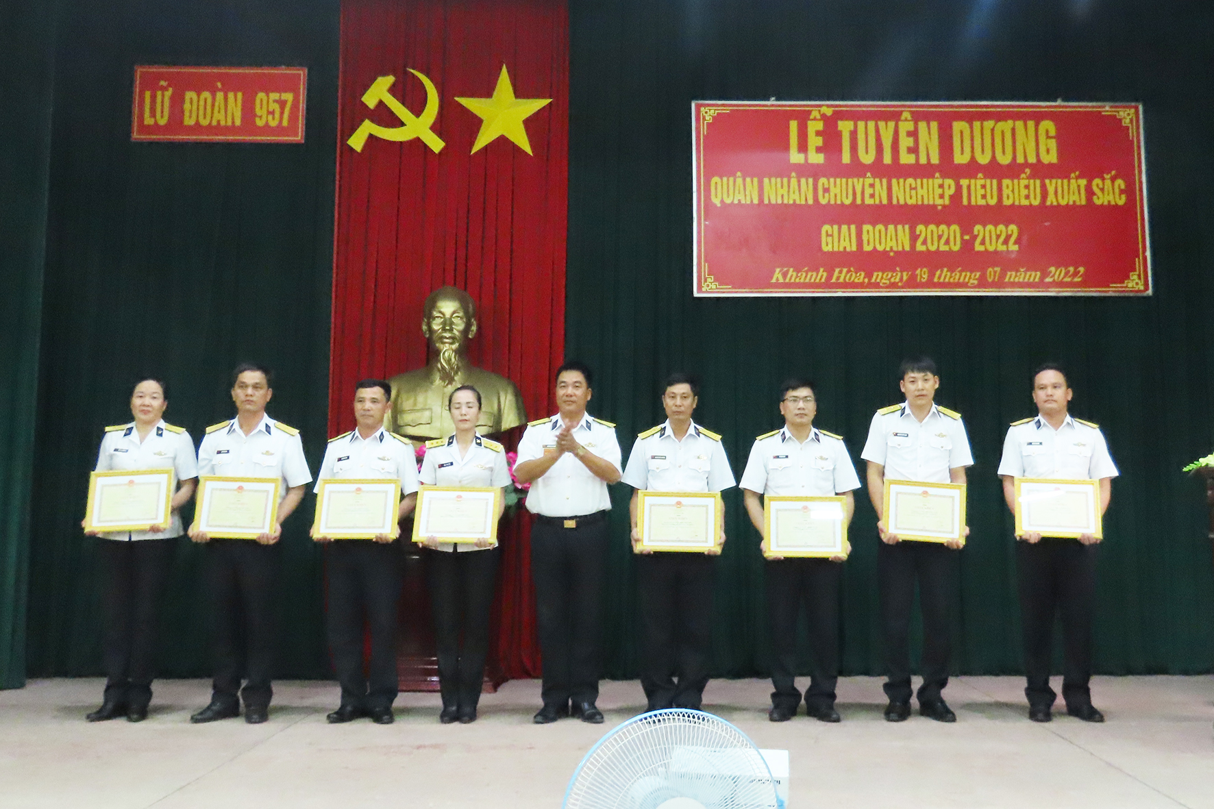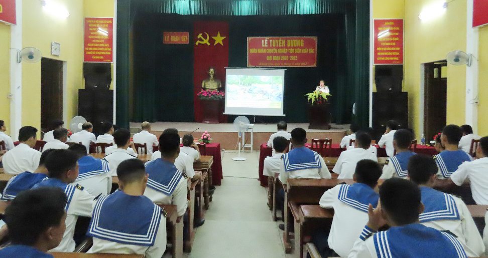 Tối 19/7, tại TP. Cam Ranh, tỉnh Khánh Hòa, Lữ đoàn 957, Vùng 4 Hải quân tổ chức tuyên dương quân nhân chuyên nghiệp (QNCN) tiêu biểu xuất sắc giai đoạn 2020-2022. Đại tá Phạm Quang Trung, Bí thư Đảng uỷ, Chính uỷ Lữ đoàn chủ trì.