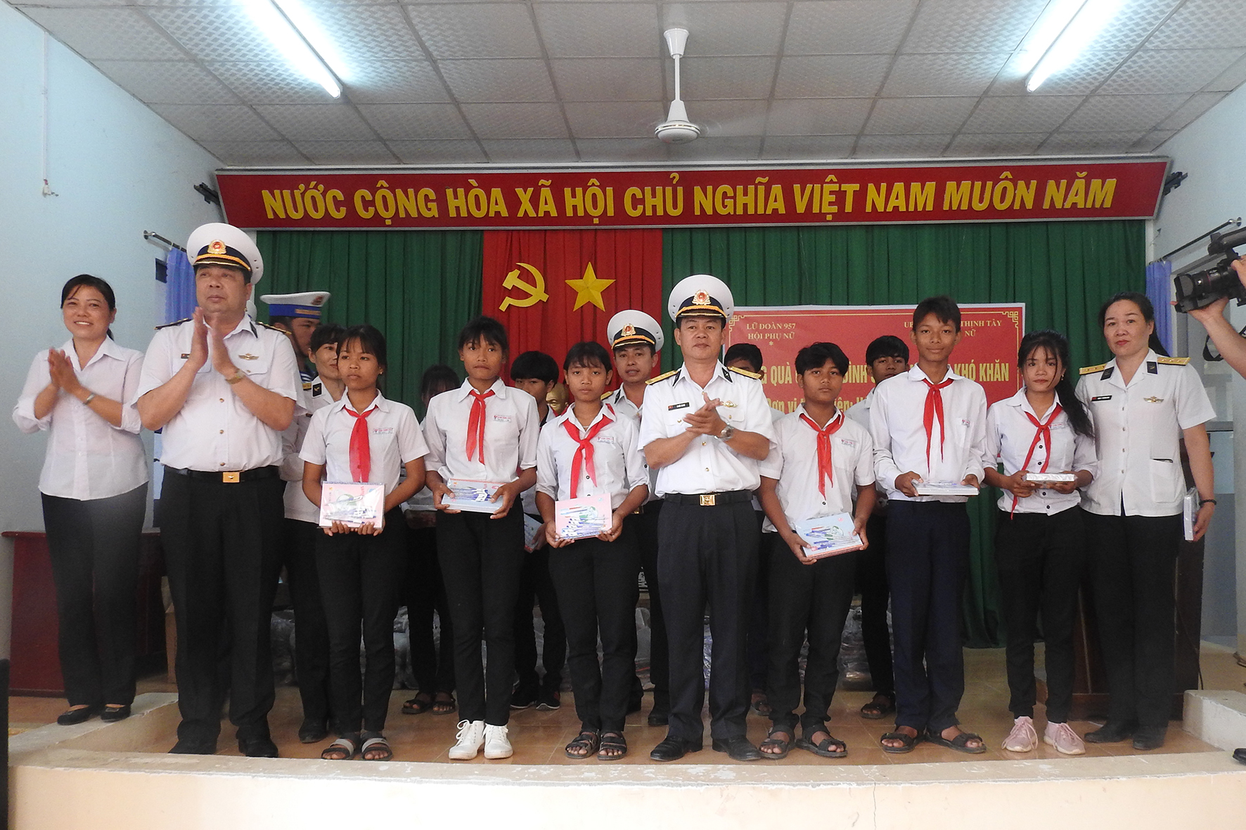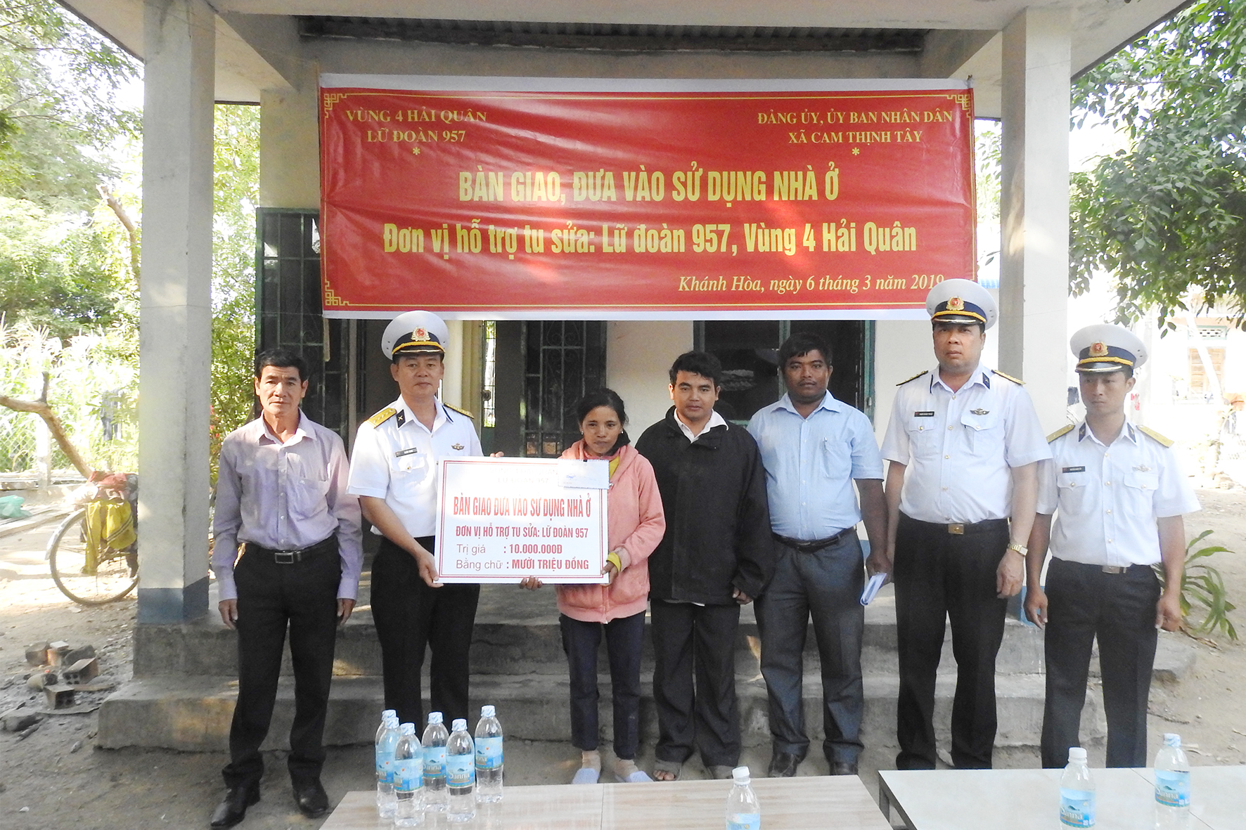 Ngày 6-3, Lữ đoàn 957, Vùng 4 Hải quân phối hợp với chính quyền địa phương xã Cam Thịnh Tây (TP. Cam Ranh, tỉnh Khánh Hòa) tổ chức bàn giao nhà ở (do đơn vị sửa chữa) cho một hộ dân và tặng quà cho các gia đình khó khăn, học sinh vượt khó học giỏi.