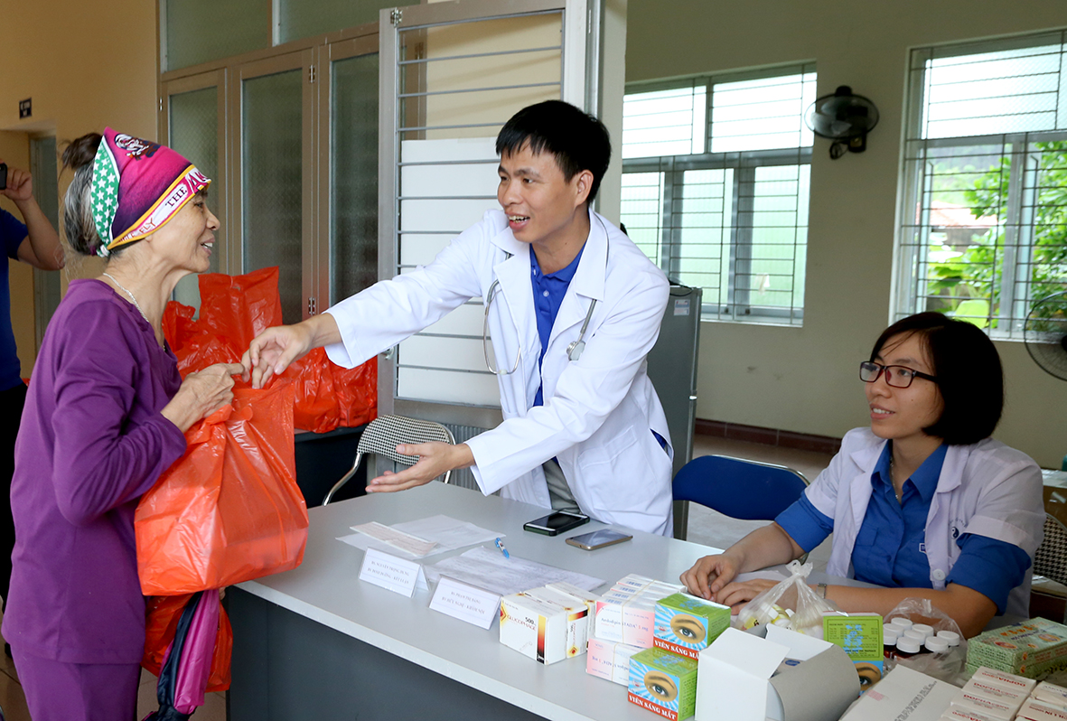 Ngày 21-7, Lữ đoàn Công binh 131 Hải quân phối hợp với Quận đoàn Hai Bà Trưng, TP. Hà Nội tổ chức khám, cấp thuốc miễn phí và tặng quà cho 120 đối tượng chính sách, các hộ nghèo là đồng bào dân tộc Dao thuộc xã Tân Dân, huyện Hoành Bồ, tỉnh Quảng Ninh nhân dịp kỷ niệm 71 năm Ngày Thương binh, liệt sĩ (27-7).