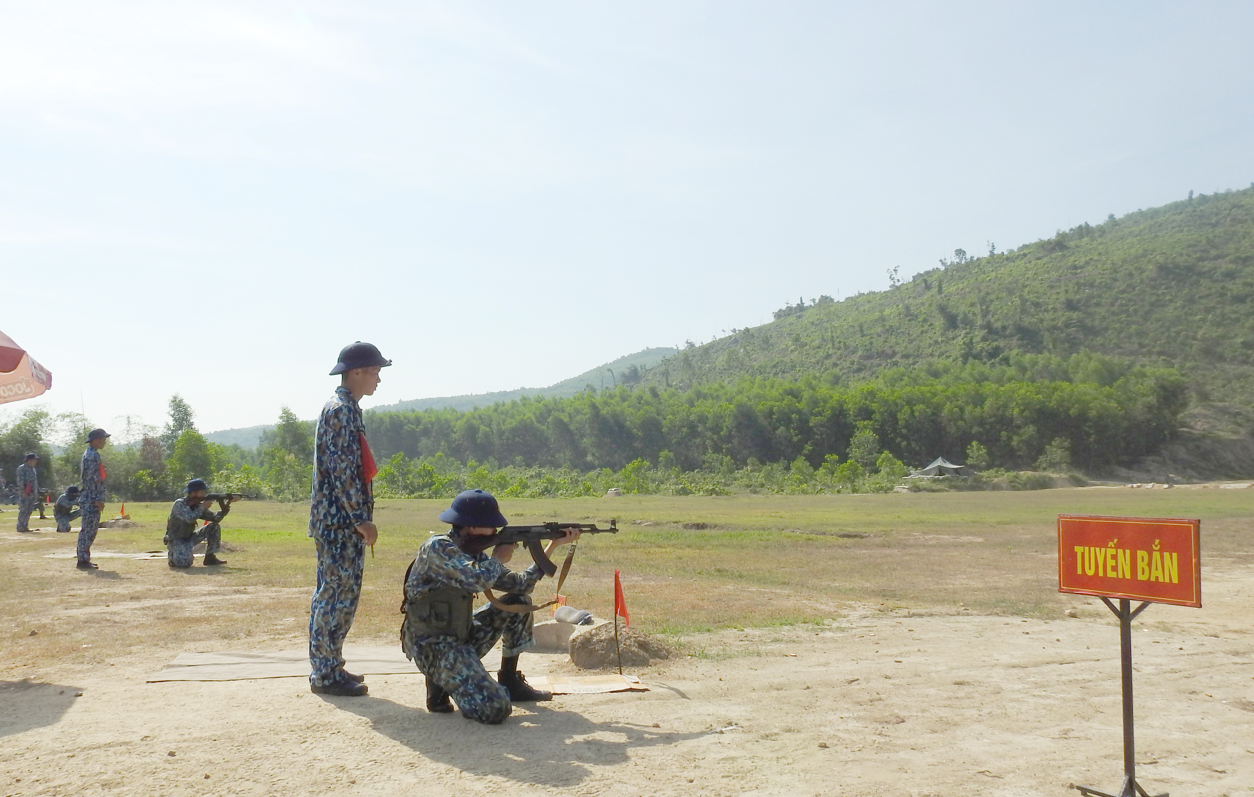 Kiểm tra nội dung bắn súng tiểu liên AK ở tư thế quỳ bắn