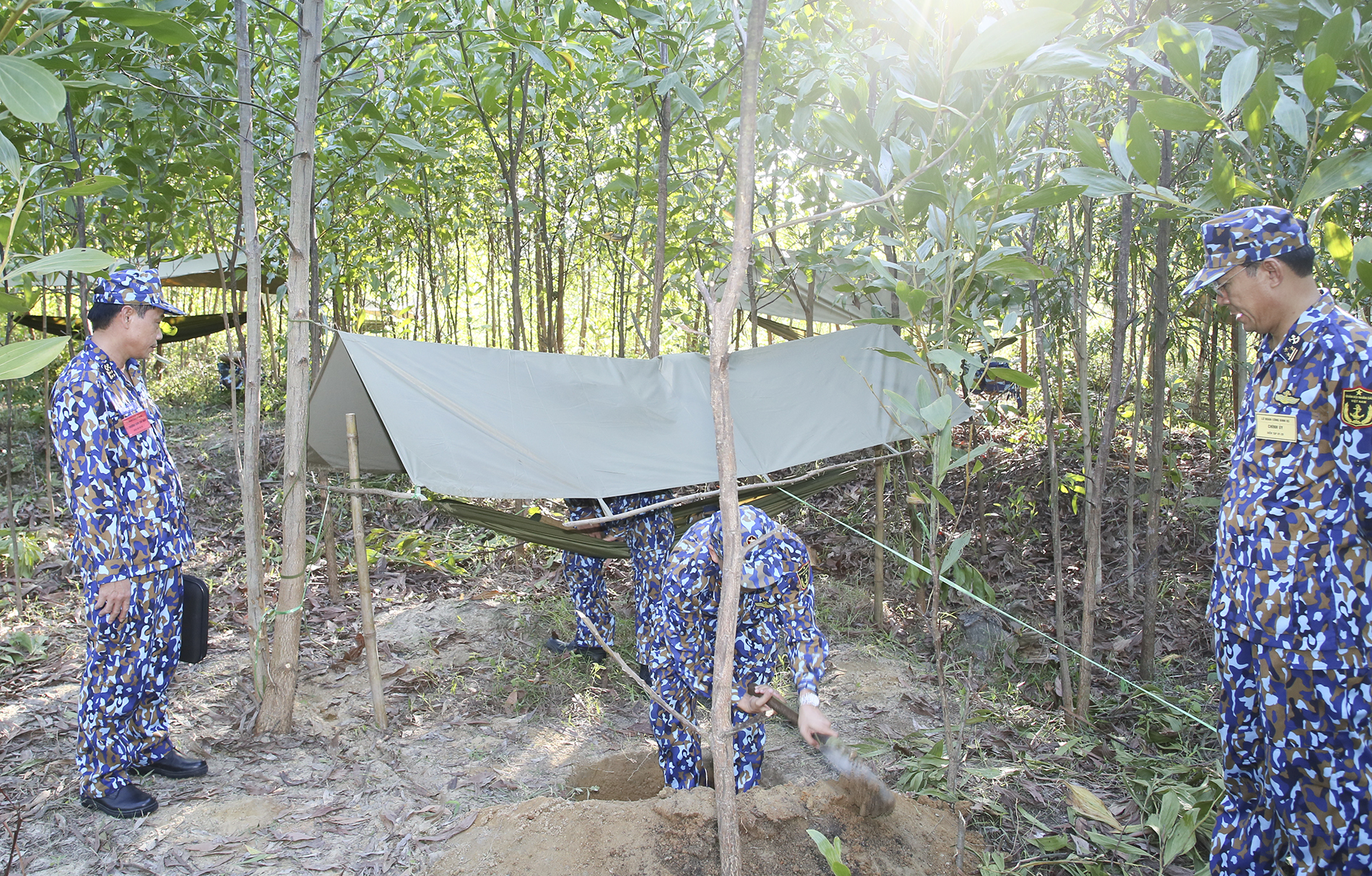 Chỉ huy Lữ đoàn 83 kiểm tra bộ đội thực hành mắc tăng võng