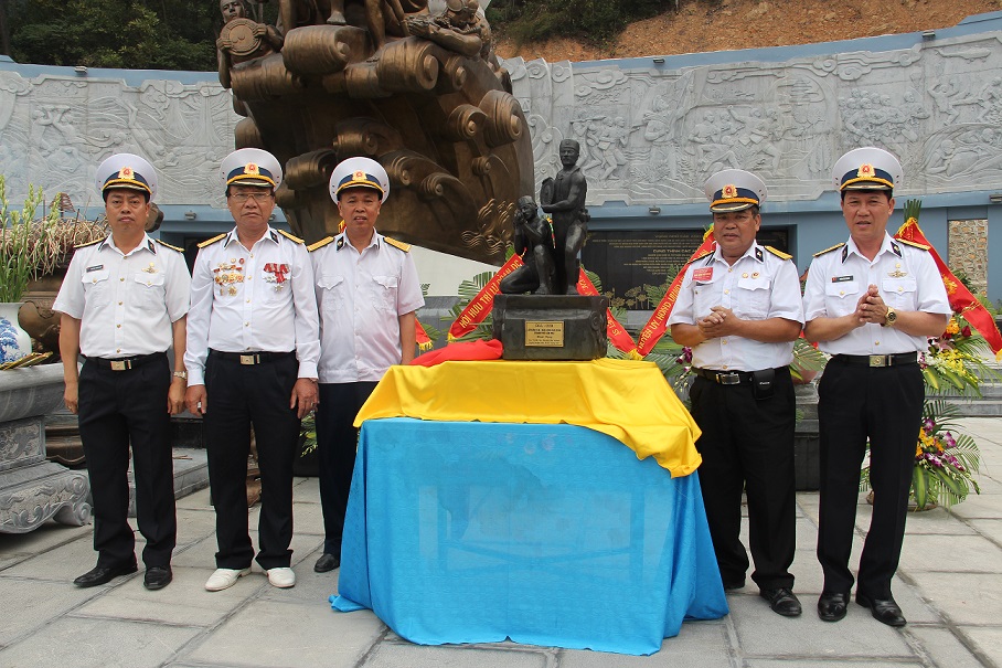 Đại diện Ban Liên lạc Cựu chiến binh Đặc công Hải quân TP Cẩm Phả tặng Lữ đoàn 126 tượng Đặc công người nhái bằng than đá nguyên khối
