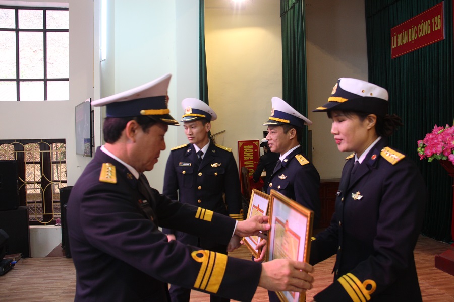 Thừa ủy quyền của thủ trưởng Bộ Tư lệnh Hải quân, Đại tá Đoàn Văn Mạnh, Chính ủy Lữ đoàn 126 trao Bằng khen của Bộ Tư lệnh cho các tập thể đạt thành tích xuất sắc trong năm 2017