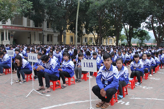 Các em học sinh trường THPT Sơn Động 1 tại buổi tuyên truyền