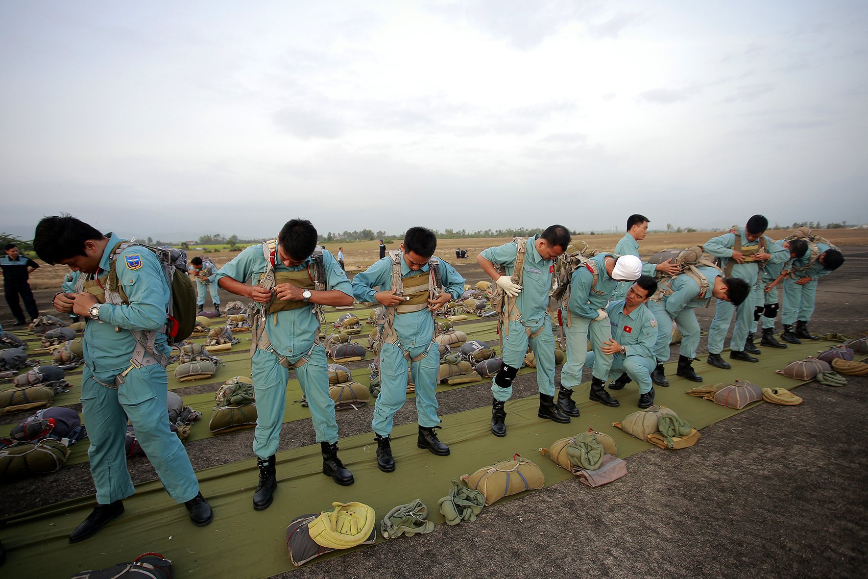 Các quân nhân của Lữ đoàn 954 làm công tác chuẩn bị nhảy dù
