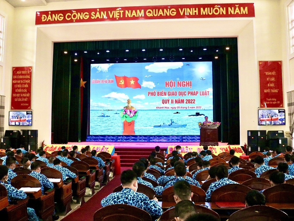 Ngày 5/5, tại TP. Cam Ranh, tỉnh Khánh Hòa, Lữ đoàn 189 phối hợp với Tòa án Quân sự Khu vực Quân chủng Hải quân tuyên truyền, phổ biến, giáo dục pháp luật năm 2022 cho cán bộ, chiến sĩ đơn vị.