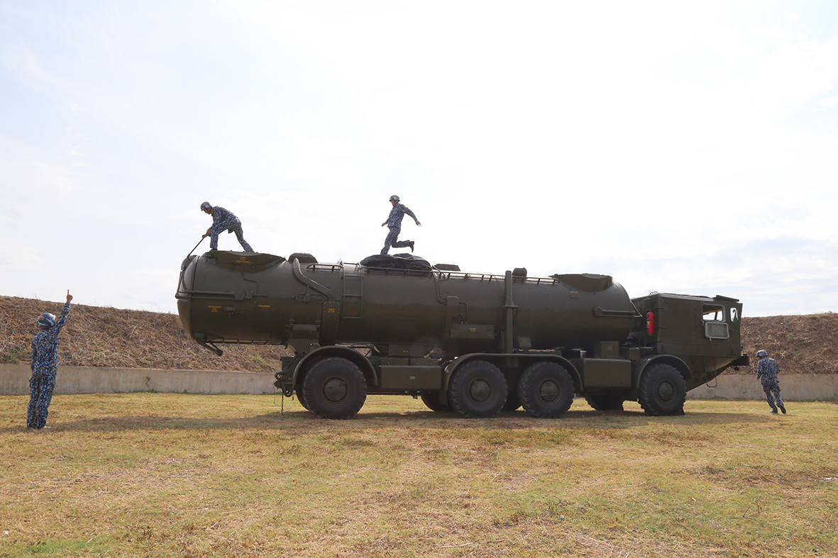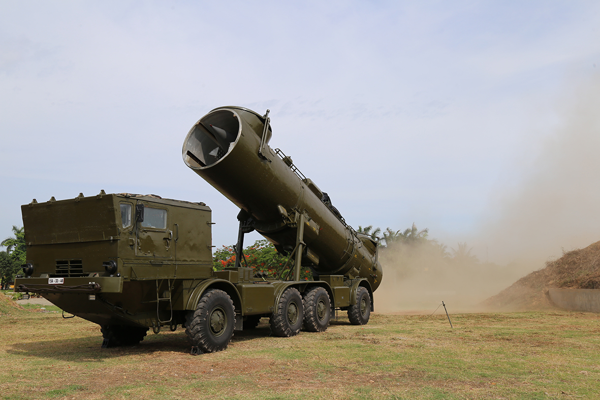 Kíp xe bệ tên lửa luyện tập chuẩn bị phóng tên lửa tiêu diệt mục tiêu