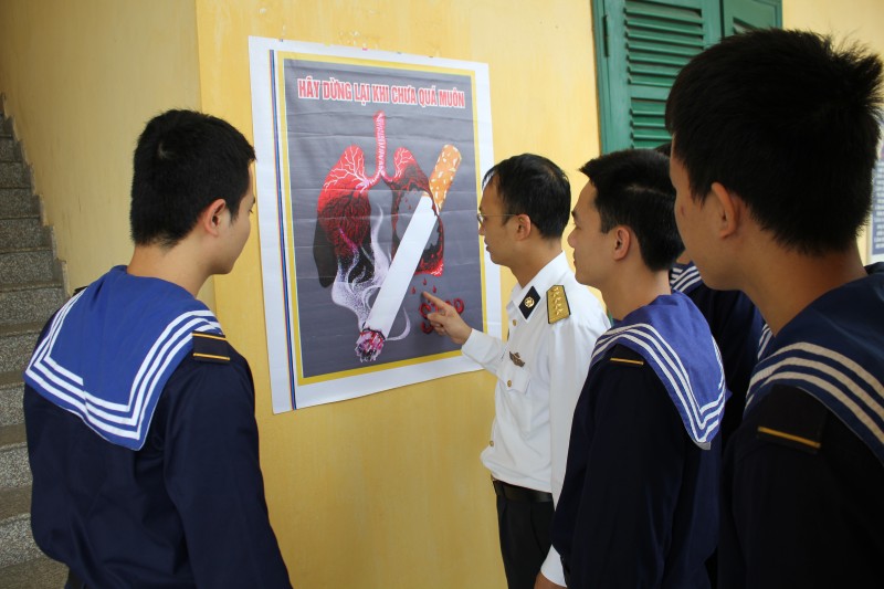 Cùng với hệ thống pa nô, khẩu hiệu, trong các bản tin truyền thanh nội bộ, các buổi sinh hoạt, giao lưu, tọa đàm, đơn vị đã khéo léo lồng ghép nội dung tuyên truyền về tác hại của thuốc lá và cách phòng, chống hút thuốc lá… nhằm tác động tích cực tới nhận thức của cán bộ, chiến sĩ.