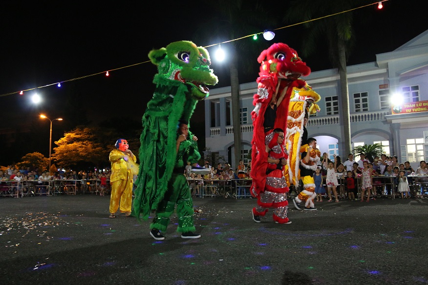 Một màn biểu diễn múa Lân tại đêm hội