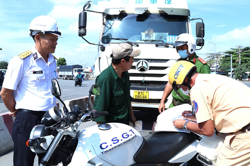 Lực lượng chức năng đã tiến hành kiểm tra ngẫu nhiên phương tiện vận tải về chấp hành các quy định biển báo và công tác an toàn giao thông tại các tuyến đường ra, vào cảng; tổ chức điều tiết phương tiện giao thông tại nút giao Nguyễn Thị Định - Lê Phụng Hiểu (phường Cát Lái). Qua kiểm tra, lực lượng chức năng đã lập biên bản 4 trường hợp dừng đỗ xe sai quy định, làm cản trở giao thông.