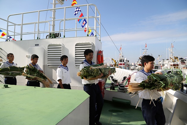 Lá dong không thể thiếu trong mỗi chuyến tàu ra đảo và nhà giàn dịp tết