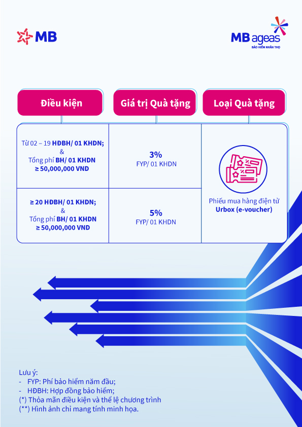 Các HĐBH cần Thỏa mãn tất cả các điều kiện của chương trình được quy định. MB trân trọng cảm ơn Quý Khách hàng luôn tin tưởng và lựa chọn giao dịch tại MB. Để được giải đáp thắc mắc, quý khách hàng vui lòng liên hệ chi nhánh MB gần nhất hoặc hotline 1900 5454 26.