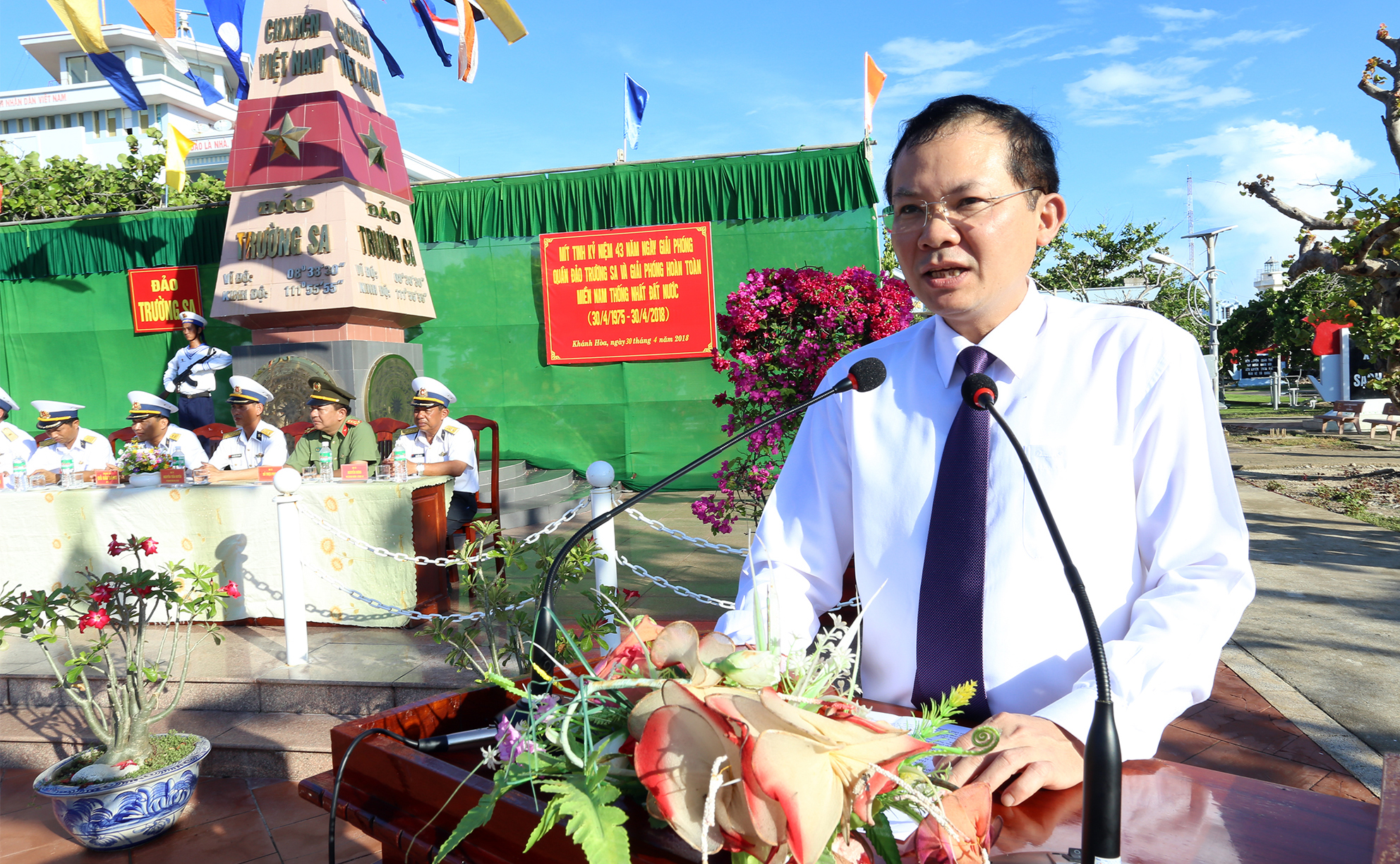 Phát biểu tại Lễ kỷ niệm, đồng chí Bùi Ngọc Quý, Phó Bí thư Đảng ủy, Vụ trưởng Vụ Tổ chức Cán bộ, Ban Tuyên giáo Trung ương nhấn mạnh: Đảng, Nhà nước, Quân đội và Nhân dân luôn thấu hiểu, cảm thông, chia sẻ những mất mát, đau thương của những gia đình trên mọi miền Tổ quốc đã có những người con yêu dấu hy sinh trong chiến dịch giải phóng quần đảo Trường Sa năm 1975 và trong sự nghiệp xây dựng biển, đảo ngày nay. Đến với Trường Sa, chúng tôi vô cùng xúc động và tự hào khi được tận mặt chứng kiến cuộc sống; sự chiến đấu, hy sinh anh dũng của cán bộ, chiến sĩ và nhân dân huyện đảo. Từ những rạn san hô đầu sóng ngọn gió, các anh đã biến thành pháo đài kiên trung, vững chắc. Các điểm đảo tiền tiêu của Tổ quốc trở thành phên dậu bảo vệ vững chắc chủ quyền biển, đảo thiêng liêng của Tổ quốc. Đoàn công tác ghi nhận và nhiệt liệt biểu dương sự cố gắng, những thành tích của quân dân huyện đảo Trường Sa đã đạt được trong thời gian qua.