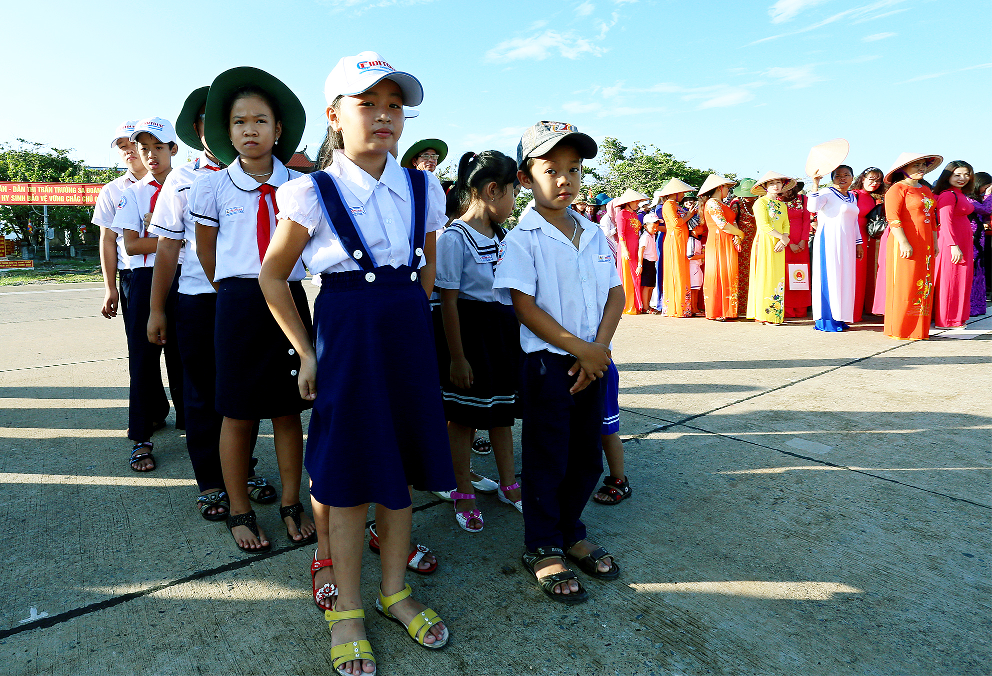 Các cháu thiếu nhi Thị trấn Trường Sa tham gia lễ kỷ niệm