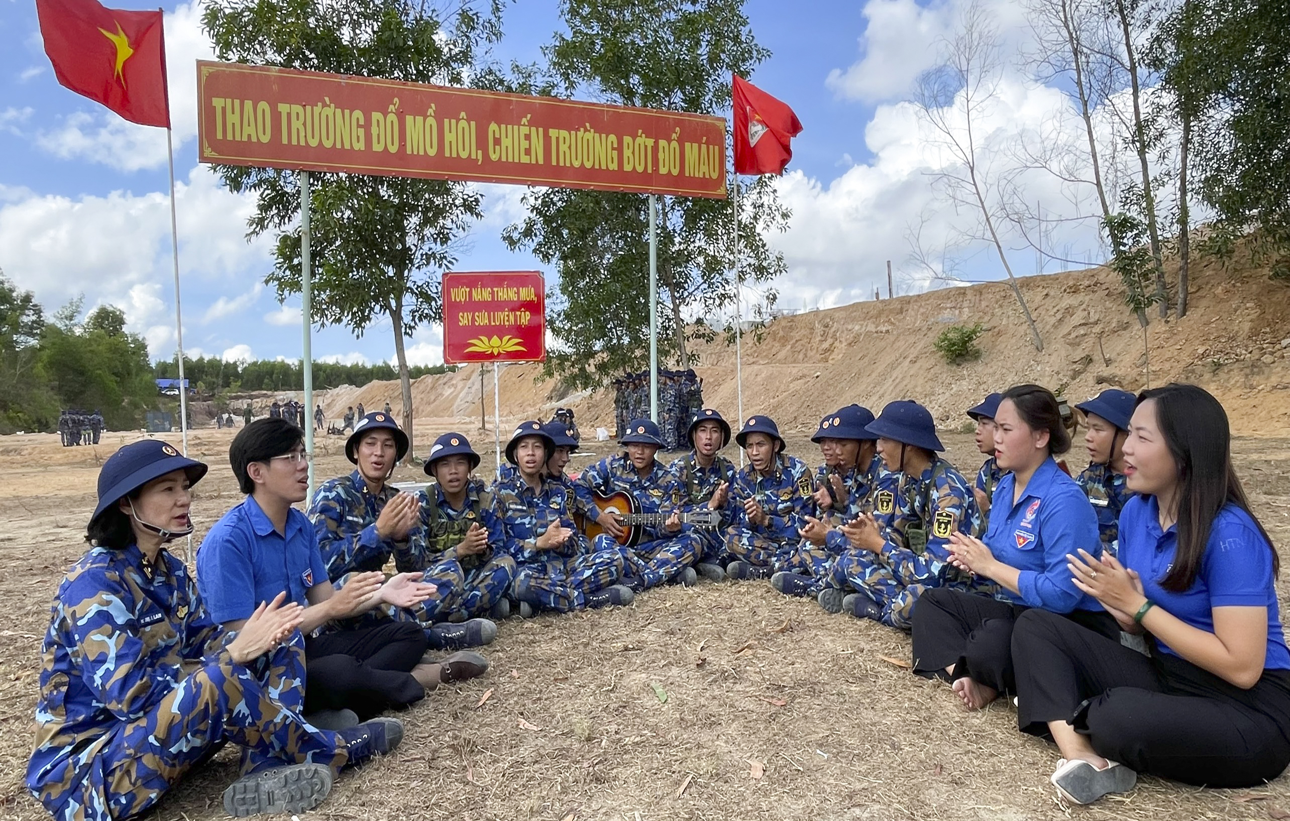 Sau khi uống nước, trò chuyện vui vẻ, cán bộ, chiến sĩ và chị em hội viên phụ nữ, các bạn đoàn viên, thanh niên của Huyện đoàn Nhơn Trạch cùng tham gia văn nghệ, nhảy dân vũ với bộ đội. Thao trường vang lên tiếng hát, hòa cùng tiếng pháo tay giòn giã khiến cái nóng như vơi đi, mệt mỏi tan biến mất. Thay vào đó là tinh thần hứng khởi, khí thế sẵn sàng cho giờ huấn luyện tiếp theo.