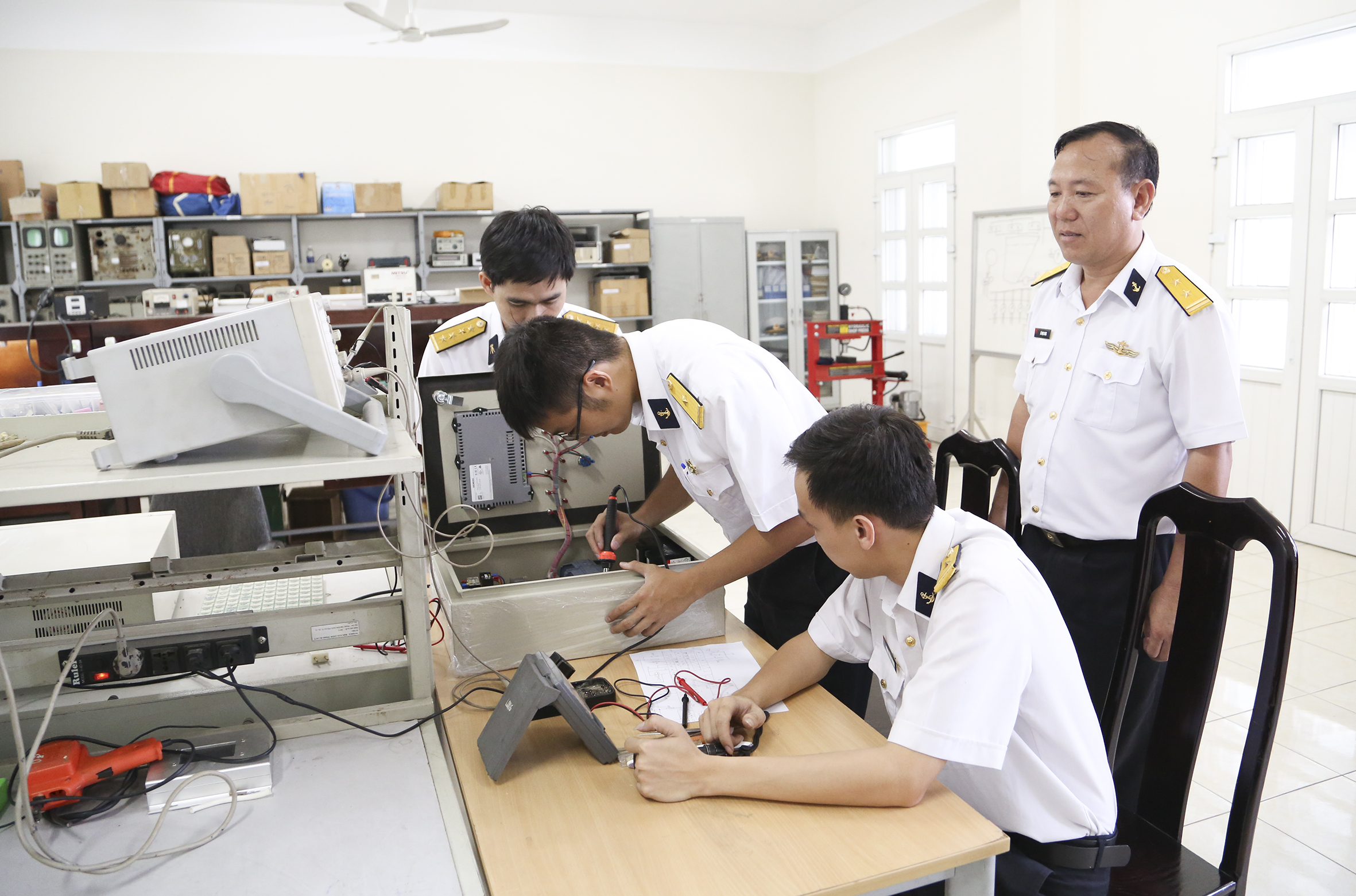 Thượng úy Thái Duy Tuấn, Trưởng ngành Phương tiện đo điện tâm sự: “Cường độ làm việc ở đây rất cao nhưng chúng tôi cảm thấy mình luôn đủ sức để hoàn thành nhiệm vụ. Điều quan trọng là mỗi người đều rất phấn khởi và tin tưởng vào sự lãnh đạo, chỉ huy, điều hành của cấp ủy, ban giám đốc. Cán bộ, nhân viên luôn có môi trường tốt để làm việc và nghiên cứu khoa học. Đối với ngành phương tiện đo điện hầu như năm nào chúng tôi cũng có đề tài, sáng kiến cải tiến kỹ thuật được đưa vào ứng dụng tại đơn vị”.