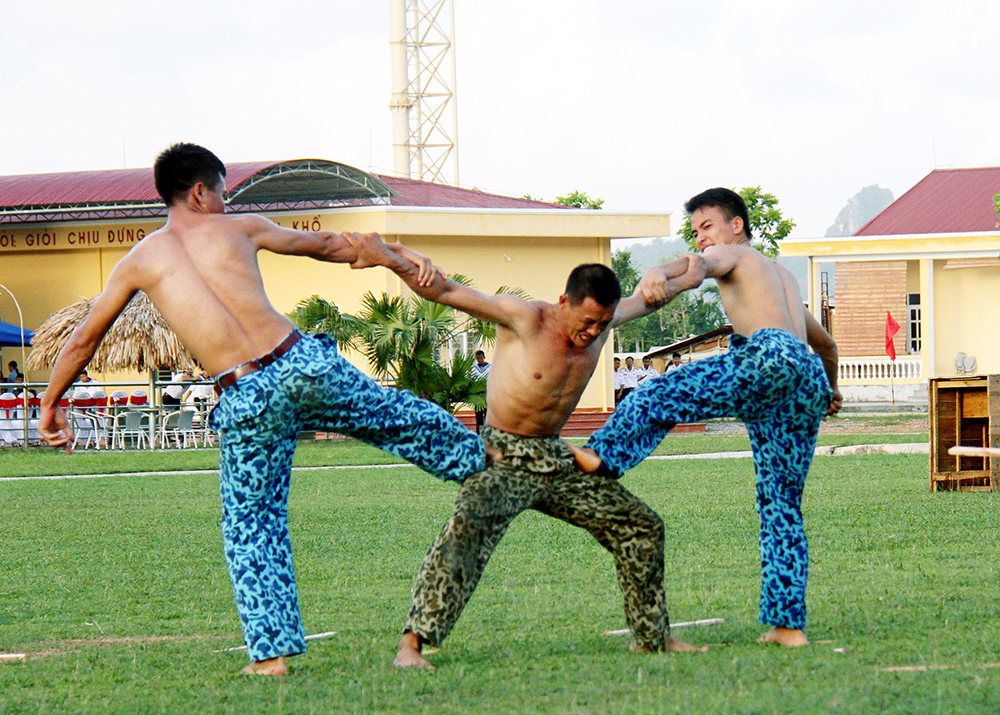 Tại thao trường đặc công khô, các chiến sĩ Trung đội 2, Đại đội 3, Tiểu đoàn 1 đang luyện tập kỹ thuật vận động qua các loại địa hình, như hàng rào dây thép gai, lá khô, cỏ rậm… Có động tác tập luyện làm tôi hồi hộp, thót tim. Theo dõi tổ 3 người nối tiếp nhau, trườn qua một hàng rào dây thép gai bùng nhùng đan sát vào nhau, phía dưới toàn sỏi đá và mìn cài cắm của địch (giả định). Những động tác bò, trườn điêu luyện, chuẩn xác từng li, đến độ đứng bên cạnh không nghe thấy tiếng động, cộng với cách ngụy trang bôi chát trên người và bộ quần áo rằn ri cộc hoà vào cỏ cây nên chẳng mấy chốc những quả mìn cài cắm của “địch” đã được tháo gỡ, tổ chiến đấu tiếp cận mục tiêu, hoàn thành bài tập.