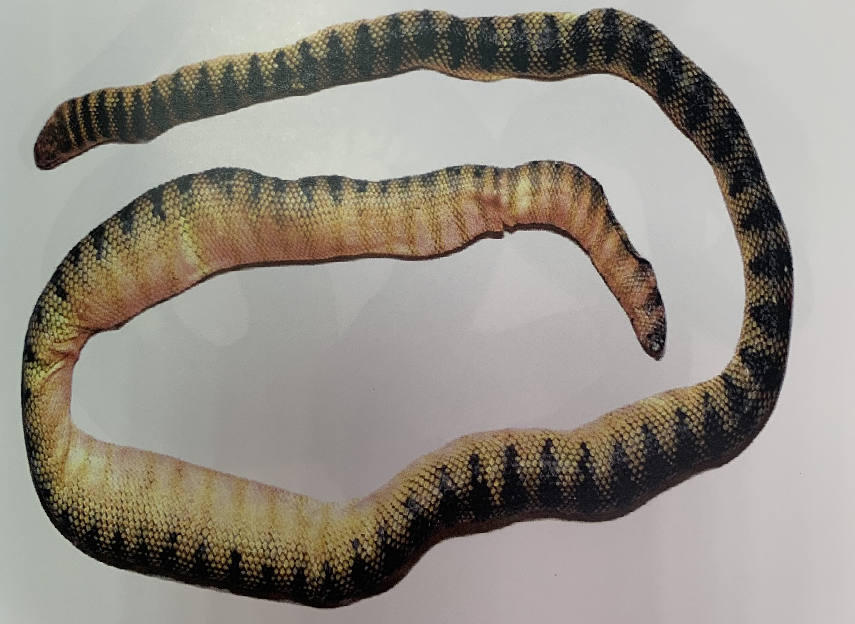 Rắn biển (Đẻn), thường sống ở các vùng đáy bùn nước ven bờ, xung quanh các đảo và cửa sông. Rắn biển có đầu và mắt nhỏ, thân hơi dẹp, đuôi dẹp, lỗ mũi chuyển lên phía đầu mút mõm. Độc tố của rắn biển có khả năng tác động lên hệ tuần hoàn, thần kinh và hủy hoại các tế bào cơ, gây liệt cơ hô hấp, có thể tử vong nhanh.