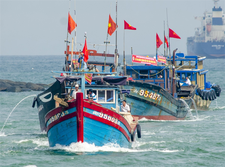 Đoàn tàu cá làm lễ xuất hành đầu Xuân mới ở cửa biển Sa Kỳ