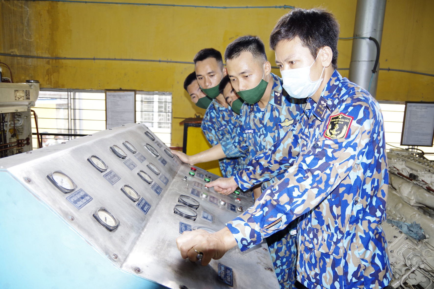 Giờ thực hành điều khiển máy tàu ở Trường CĐKT Hải quân. Ảnh: NT