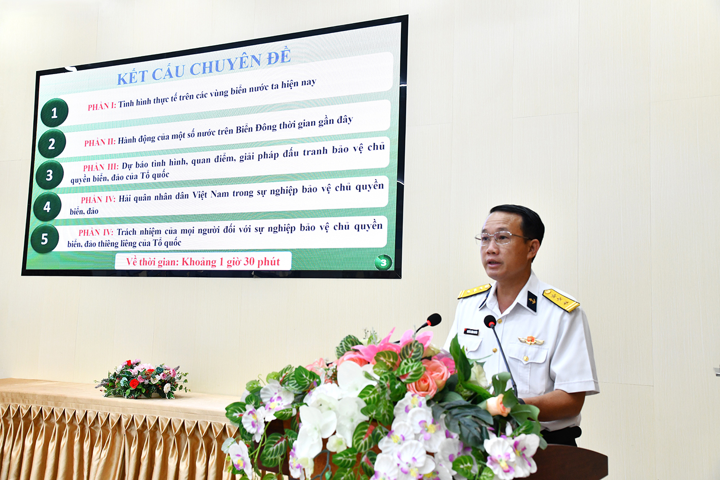 Tại hội nghị, cáo viên của Bộ Tư lệnh Vùng 5 đã thông tin, tuyên truyền về biển đảo cho hàng trăm cán bộ, đảng viên, đoàn viên, hội viên, chức sắc, chức việc tôn giáo và cán bộ ấp, khu phố trên địa bàn phường Dương Đông.
