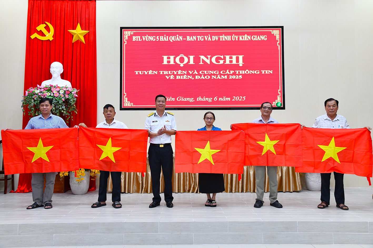 Chiều 5/6, Bộ Tư lệnh Vùng 5 Hải quân phối hợp với Ban Tuyên giáo và Dân vận Tỉnh ủy Kiên Giang tổ chức Hội nghị tuyên truyền biển đảo tại phường Dương Đông, TP. Phú Quốc (Kiên Giang).