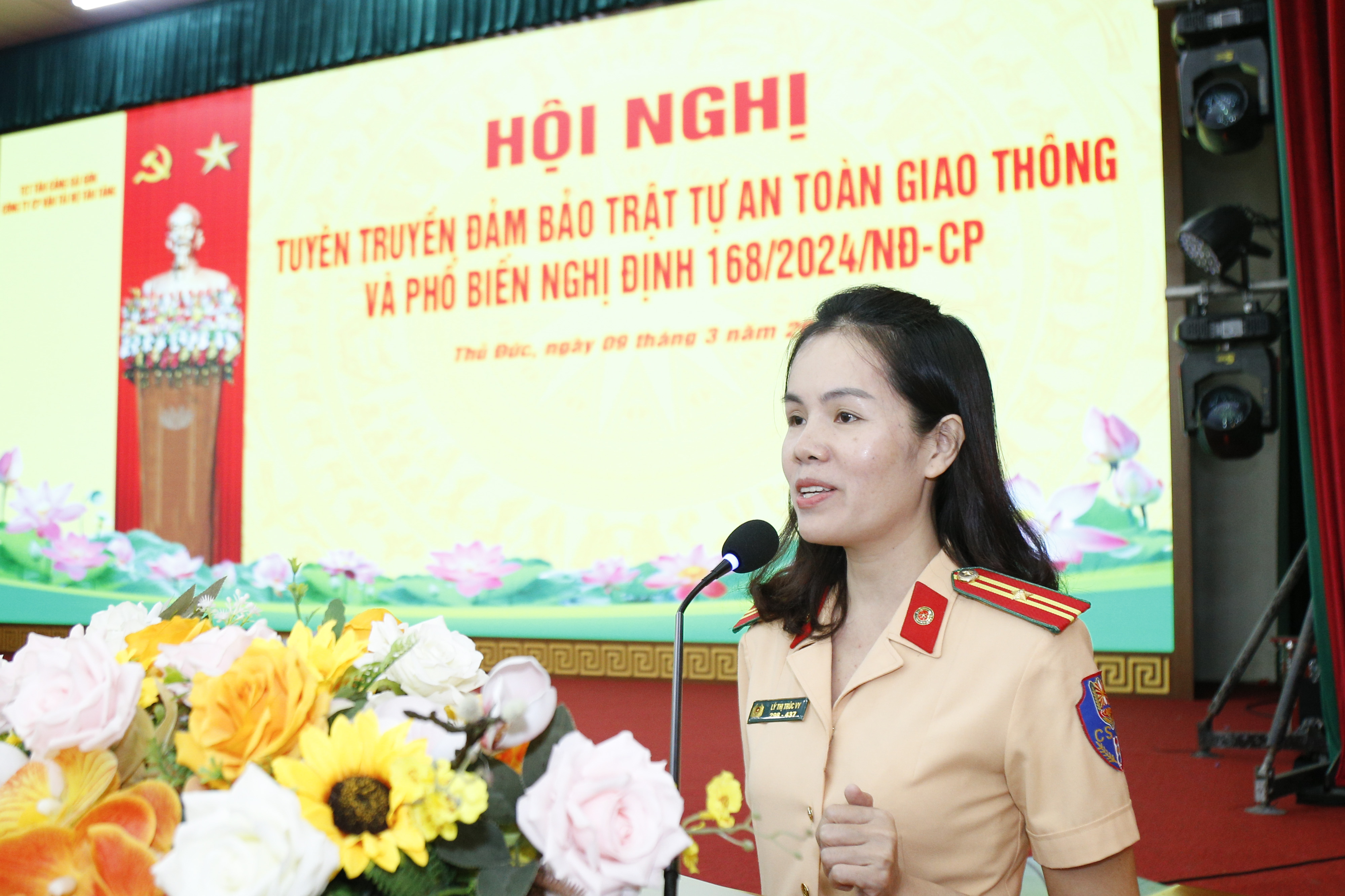 Báo cáo viên của Phòng Cảnh sát giao thông truyền đạt nội dung
