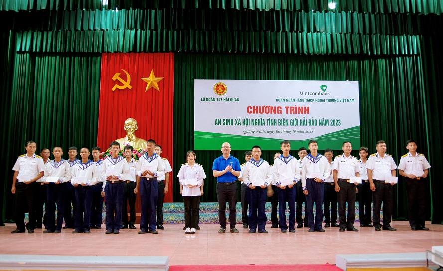 Chiều 6/10, tại thị xã Quảng Yên (Quảng Ninh), Lữ đoàn 147, Vùng 1 Hải quân phối hợp với Đoàn thanh niên Ngân hàng Thương mại cổ phần Ngoại thương Việt Nam (Vietcombank) tổ chức chương trình “An sinh xã hội nghĩa tình biên giới, hải đảo”.