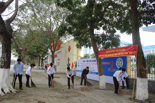 Với mục tiêu làm sạch môi trường, giúp cán bộ, nhân viên của Viện nâng cao ý thức bảo vệ môi trường xanh, sạch, đẹp, thân thiện và nâng cao chất lượng chăm sóc sức khỏe cho bệnh nhân đến khám và điều trị tại Viện, đoàn viên, thanh niên Viện Y học đã vệ sinh 3 km đường nội bộ, 5.000 m2 vỉa hè, sân vườn; thu gom chai lọ, bao bì, ni lon, nhổ cỏ dại, san mặt bằng; bóc dỡ quảng cáo, rao vặt, tẩy xóa vết bẩn bờ tường quanh Viện.