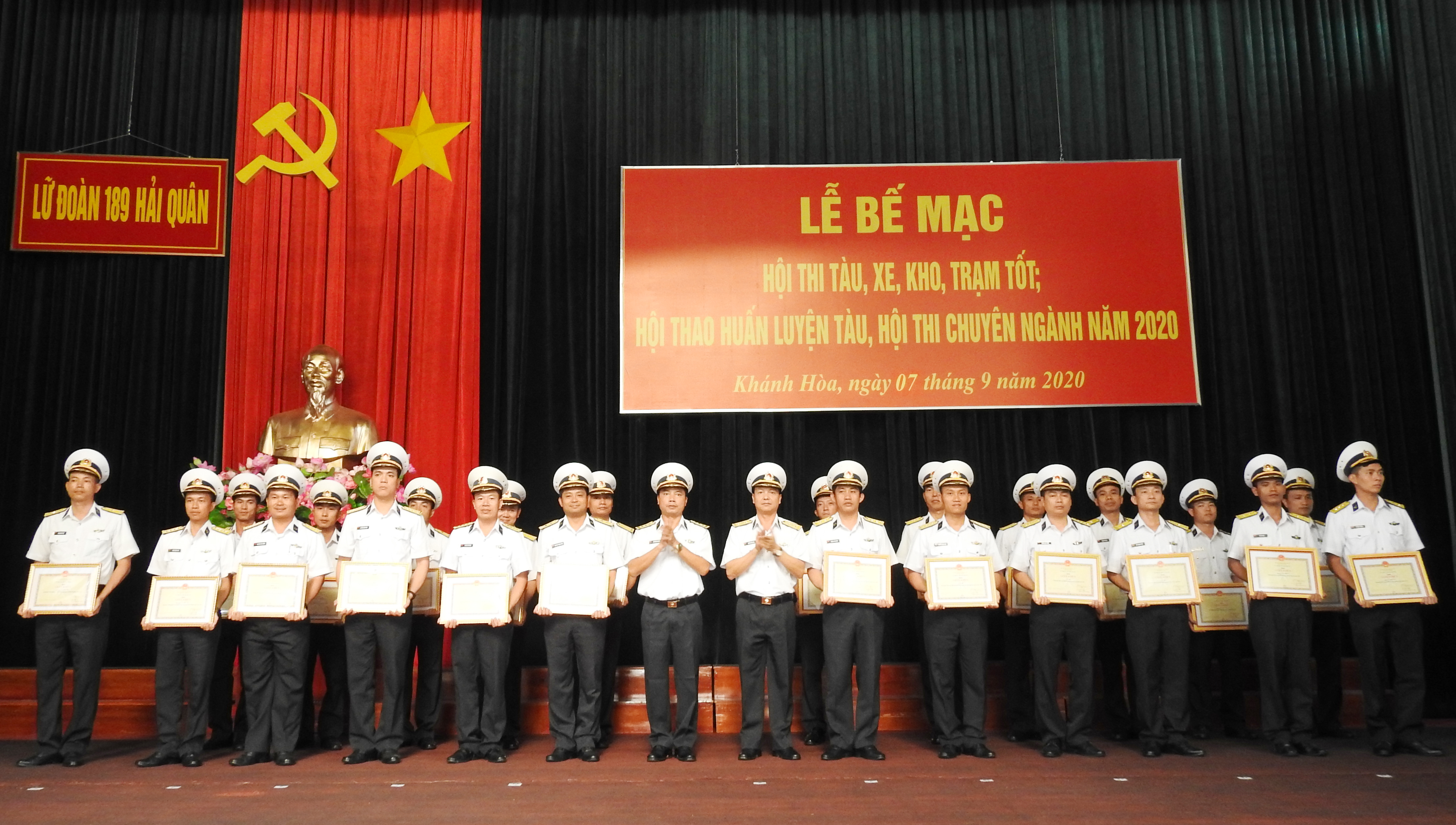Thủ trưởng Lữ đoàn 189 trao thưởng cho các tập thể có thành tích xuất sắc trong Hội thi tàu, xe, kho, trạm tốt