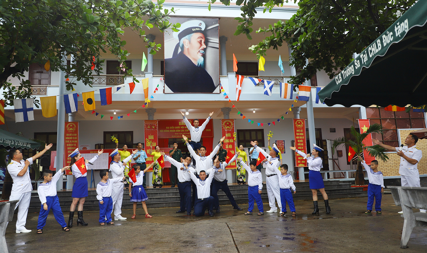 Quân và dân thị trấn Trường Sa vui mừng chào đón ngày bầu cử.
