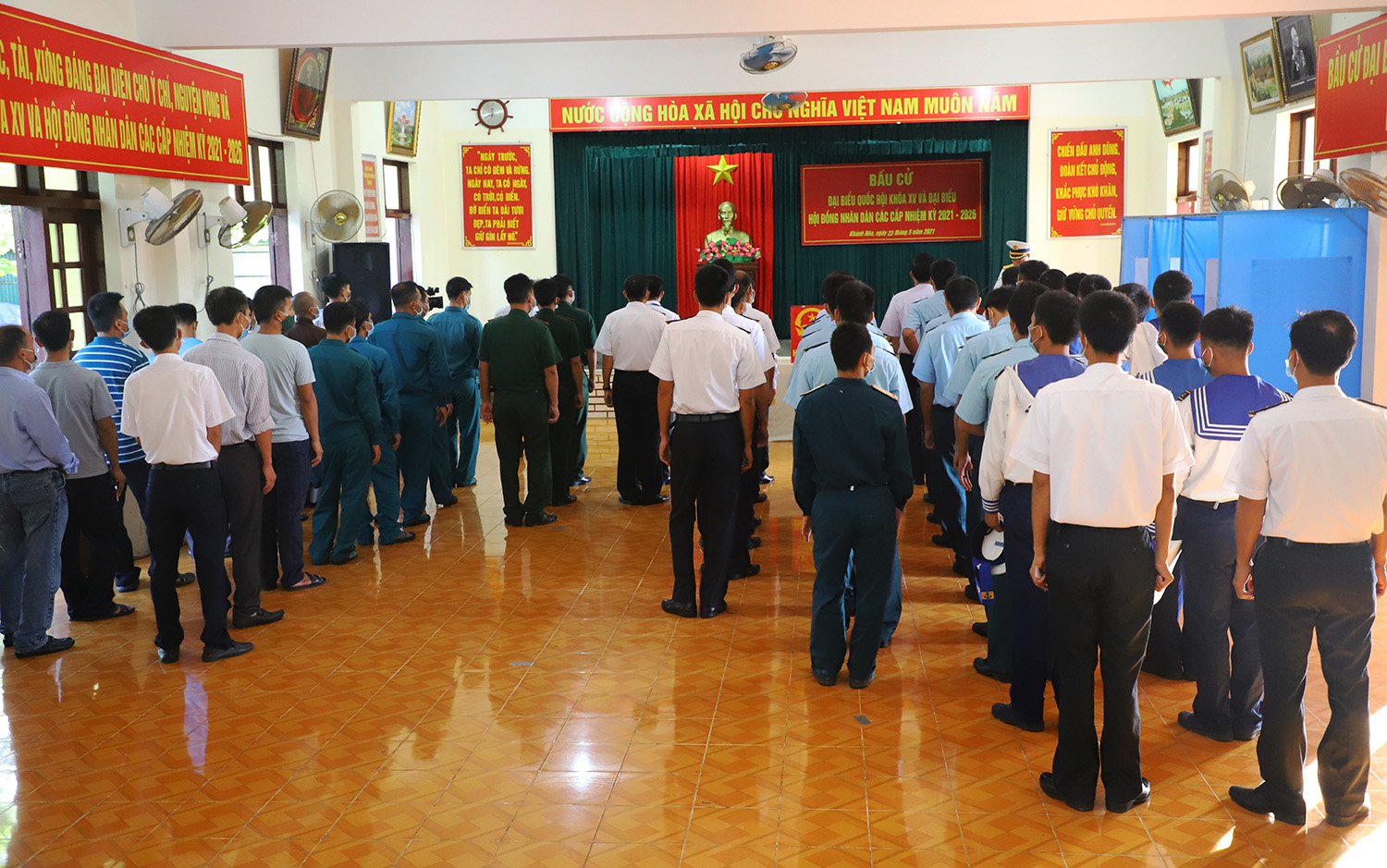 7 giờ ngày 23/5, tại thị trấn Trường Sa, Ủy ban bầu cử huyện đảo Trường Sa, tỉnh Khánh Hòa tổ chức bầu cử đại biểu Quốc hội Khóa XV và đại biểu hội đồng nhân dân các cấp nhiệm kỳ 2021-2026.