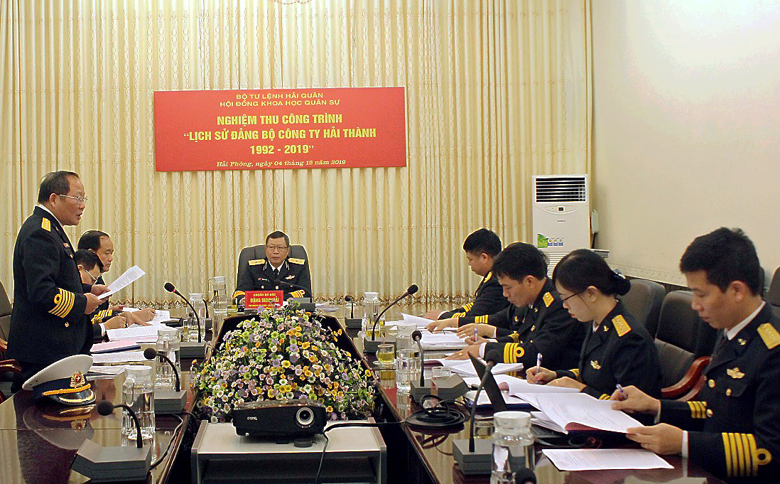 Chiều 4-12, tại Hải Phòng, Hội đồng khoa học Quân chủng Hải quân tổ chức nghiệm thu công trình “Lịch sử Đảng bộ Công ty Hải thành (1992-2019)”. Chuẩn Đô đốc Đặng Minh Hải, Phó Chính ủy Hải quân, Chủ tịch Hội đồng chủ trì.