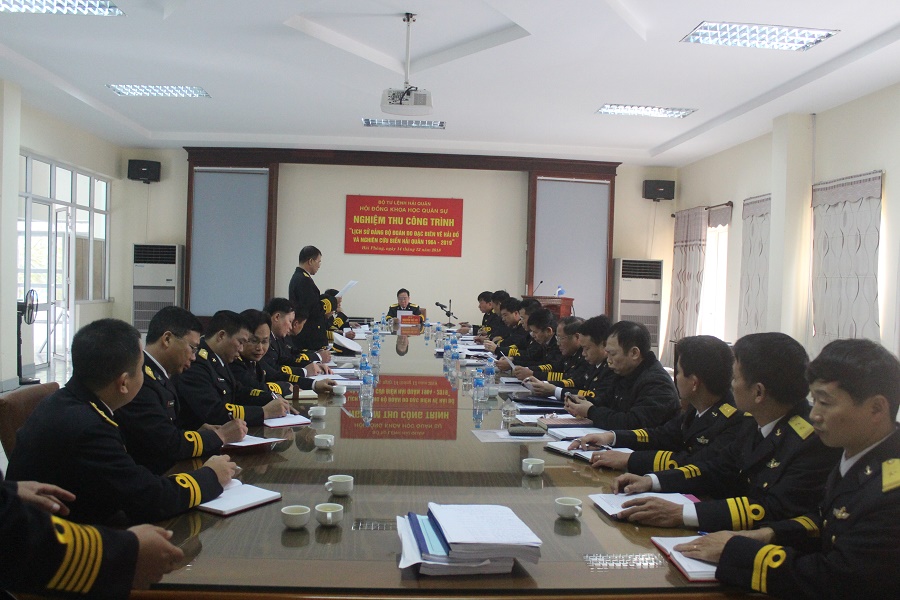 Sáng 14-12, tại TP. Hải Phòng, Hội đồng khoa học Bộ Tham mưu Hải quân tổ chức nghiệm thu công trình “Lịch sử Đảng bộ Đoàn Đo đạc biên vẽ hải đồ và nghiên cứu biển 1964 -2019”. Đại tá Nguyễn Thế Tốt, Phó Tham mưu trưởng Hải quân, Chủ tịch Hội đồng nghiệm thu chủ trì. Thượng tá Phan Thành Long, Chủ nhiệm Chính trị Đoàn là Chủ nhiệm đề tài.