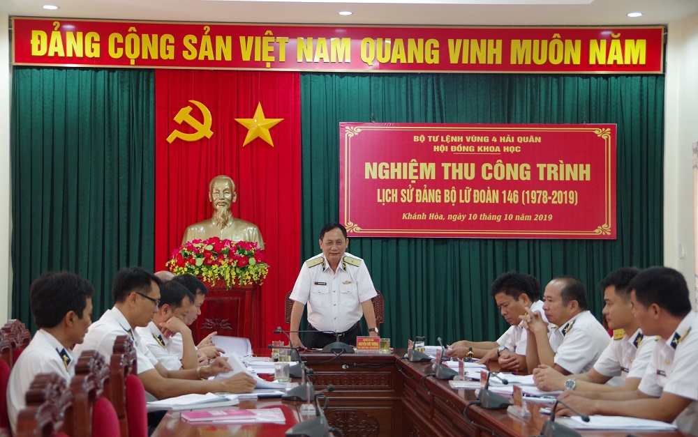 Sáng 10-10, tại TP. Cam Ranh, tỉnh Khánh Hòa, Hội đồng khoa học Vùng 4 Hải quân đã tổ chức nghiệm thu Công trình lịch sử Đảng bộ Lữ đoàn 146 (1978-2019). Chuẩn Đô đốc Nguyễn Đức Vượng, Bí thư Đảng ủy, Chính ủy Vùng, Chủ tịch Hội đồng nghiệm thu chủ trì.