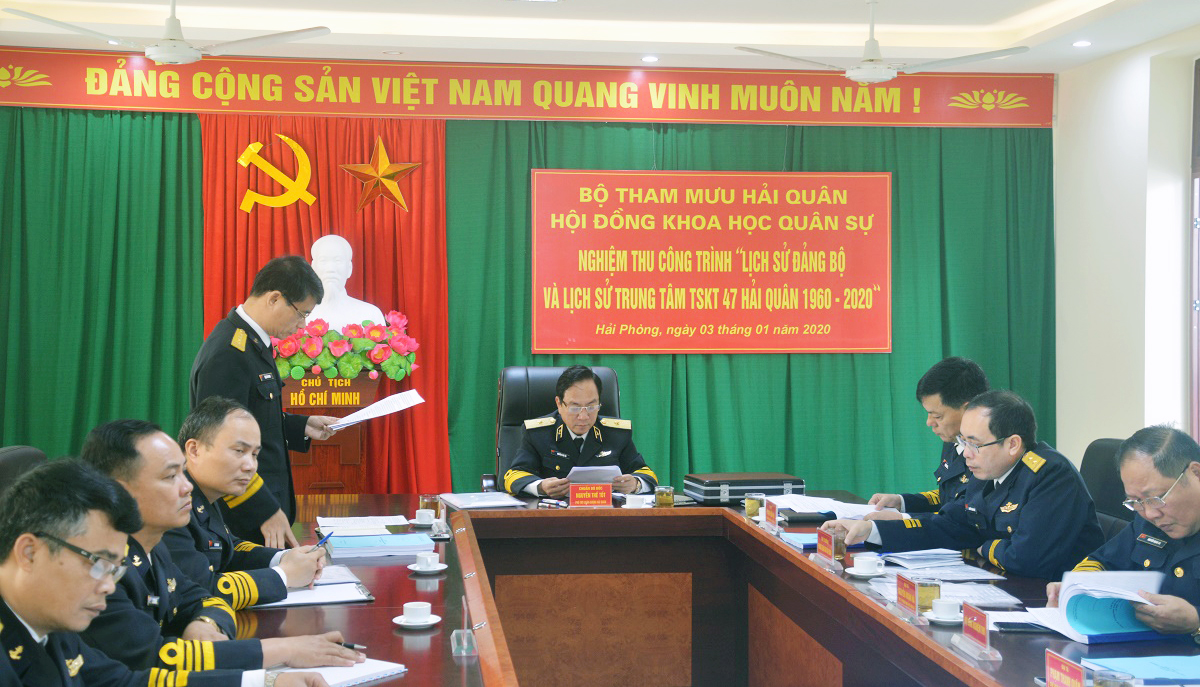 Sáng 3-1, tại Hải Phòng, Hội đồng Khoa học quân sự Bộ Tham mưu Hải quân đã tổ chức nghiệm thu công trình Lịch sử Đảng bộ và lịch sử Trung tâm 47 Hải quân (1960 – 2020). Chuẩn Đô đốc Nguyễn Thế Tốt, Phó Tham mưu trưởng Hải quân, Chủ tịch Hội đồng chủ trì.