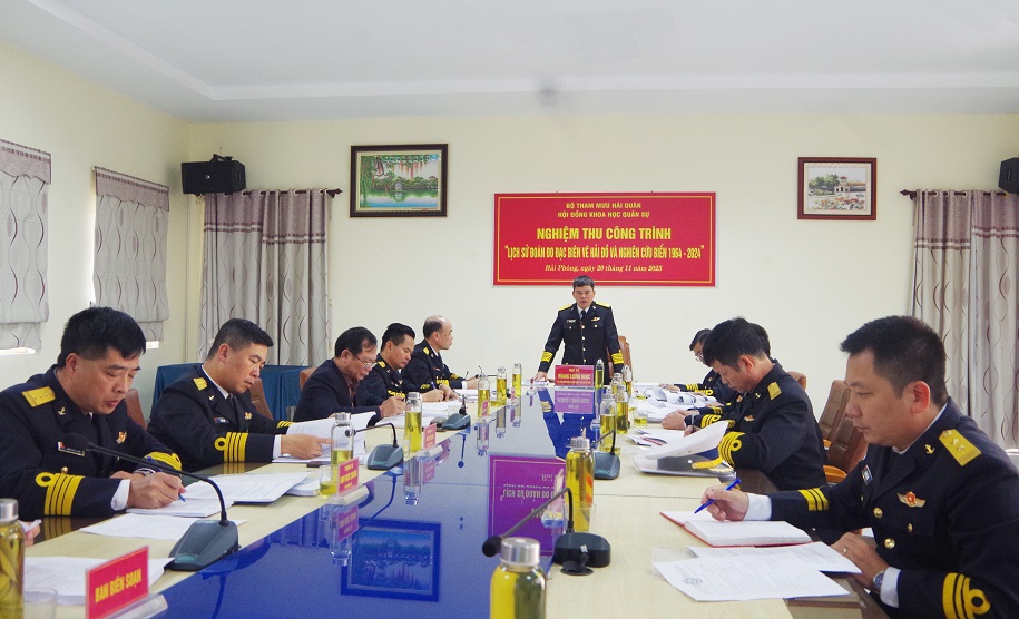 Tham dự buổi nghiệm thu còn có đại diện Phòng Khoa học quân sự, Phòng Hàng hải - Bản đồ, Phòng Chính trị Bộ Tham mưu Hải quân cùng các đồng chí trong Ban biên soạn, chỉ huy Đoàn Đo đạc biên vẽ hải đồ và nghiên cứu biển.