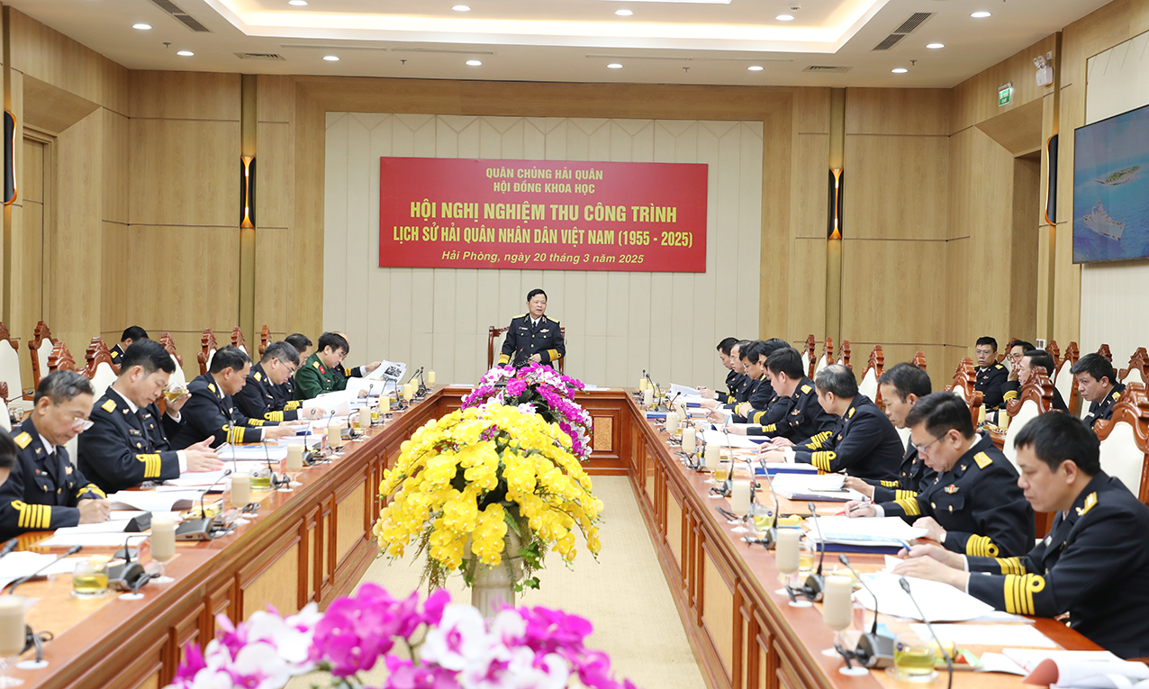 Sáng 20/3, tại Hải Phòng, Hội đồng khoa học quân sự Quân chủng Hải quân tổ chức Hội nghị nghiệm thu công trình Lịch sử Hải quân nhân dân Việt Nam (1955-2025). Trung tướng Nguyễn Văn Bổng, Bí thư Đảng ủy, Chính ủy Hải quân, Chủ tịch Hội đồng khoa học quân sự Quân chủng chủ trì.