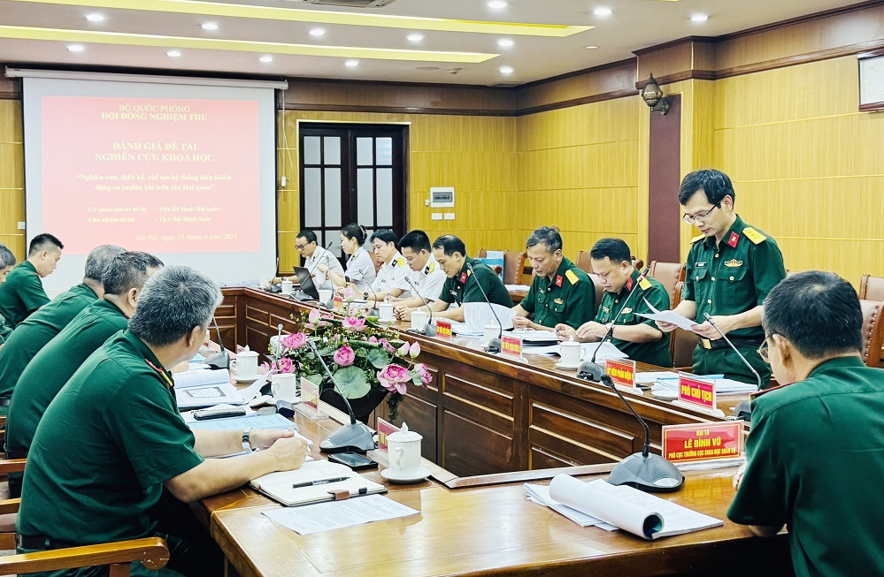 Chiều 21/6, tại Hà Nội, Hội đồng Khoa học Bộ Quốc phòng tổ chức nghiệm thu đề tài cấp Bộ Quốc phòng “Nghiên cứu thiết kế, chế tạo hệ thống điều khiển, giám sát động cơ turbine khí trên tàu Hải quân” do Viện Kỹ thuật Hải quân chủ trì thực hiện. Đại tá, TS Lê Đình Vũ, Phó Cục trưởng Cục Khoa học Quân sự, Chủ tịch Hội đồng chủ trì.
